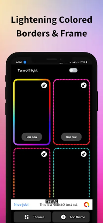 Lightening Screen Border and Edge Lighting Screen Border give you the option to set any type of border light for your mobile screen to look more attractive shining. You can use the settings available in the edge light app to customize the notch light. This Edge Lighting colour border light app is the best app to display border light on your phone screen increasing the beauty of your phone screen. The border light app shows changing light gradients animating across the border with different styles around the edge of your whole phone screen.