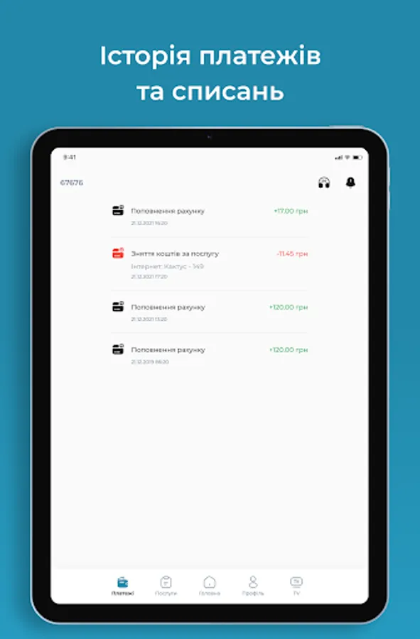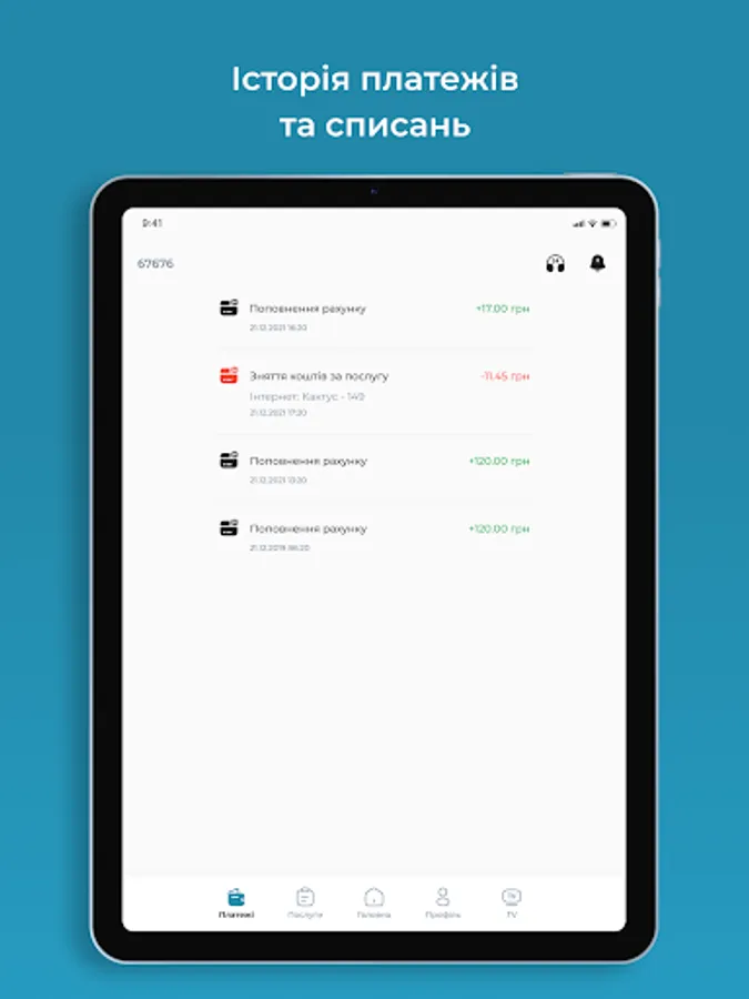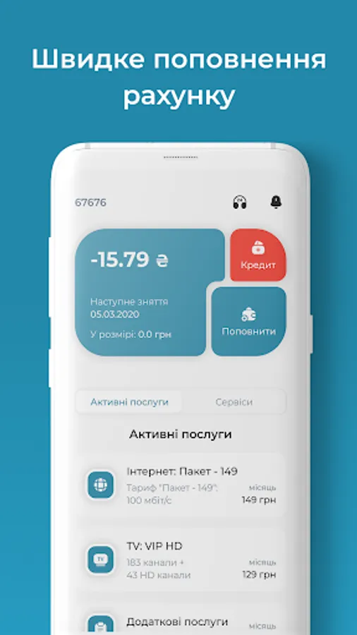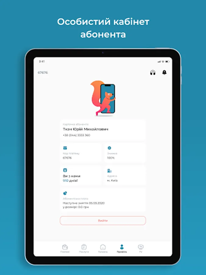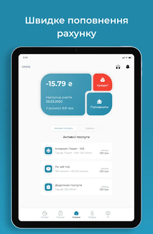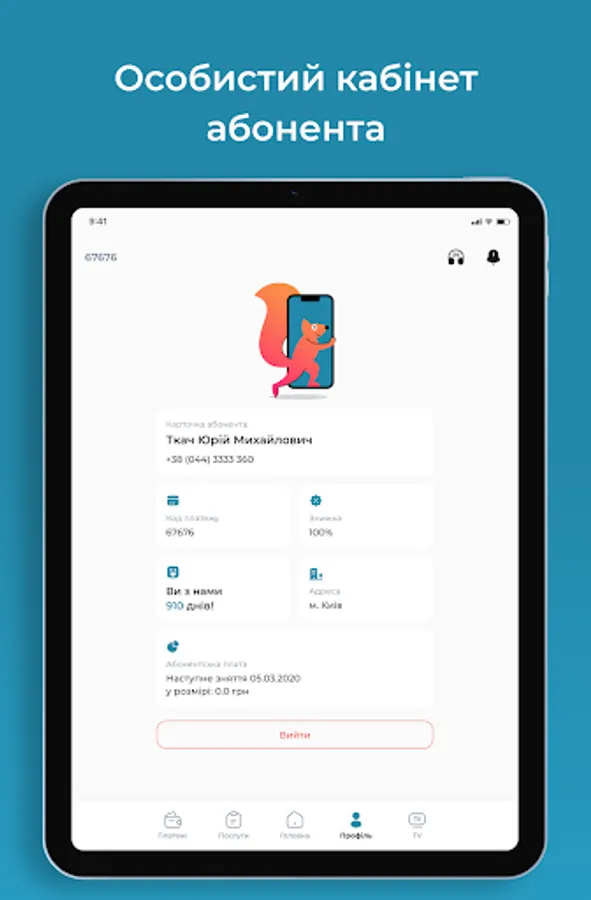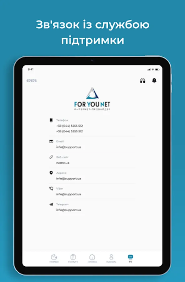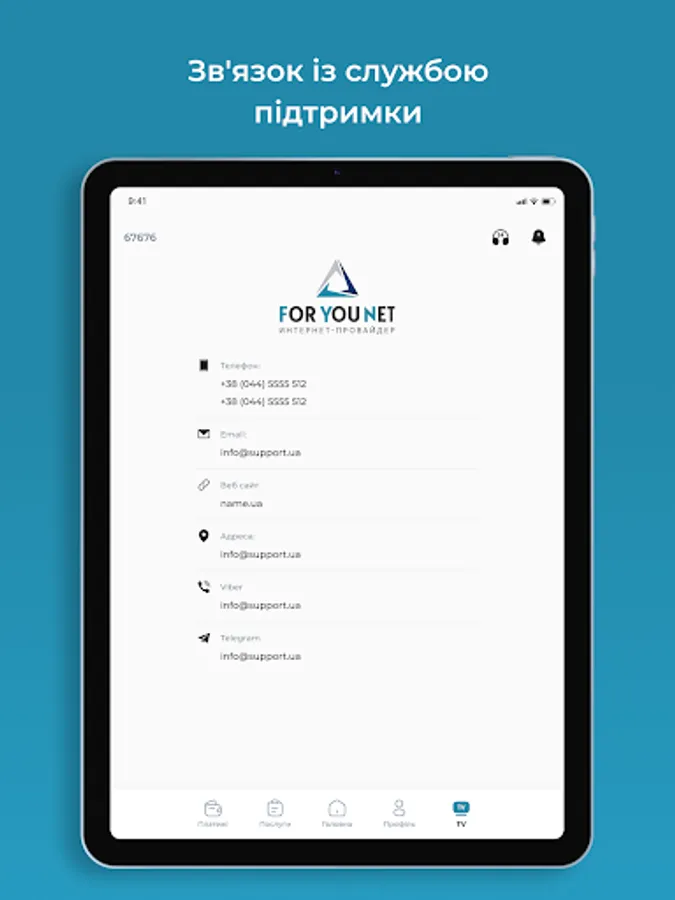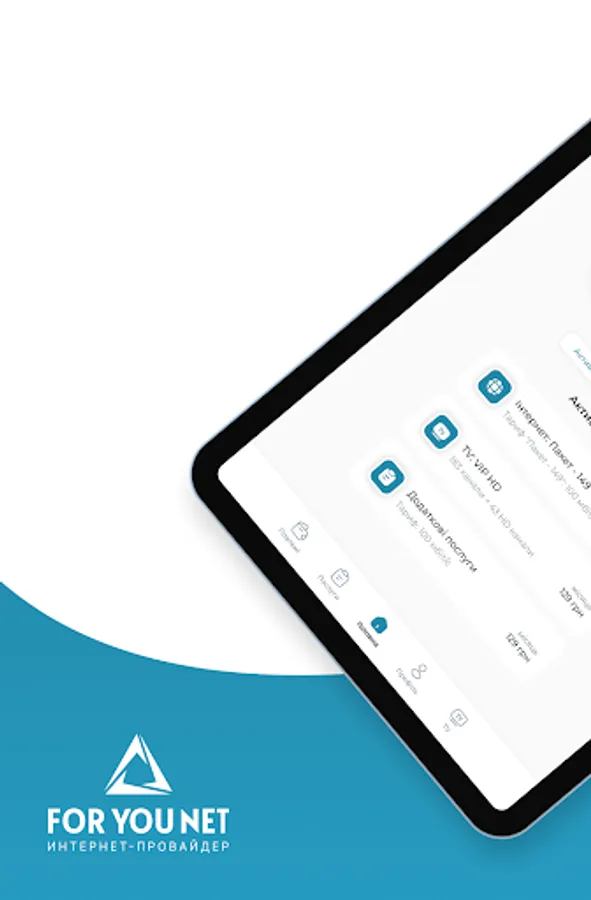 Mobile Application "Personal Cabinet" for Subscribers of the provider ForYou.net.ua - provides an opportunity to monitor the balance, turn on / off the service (parental control, vacation, credit limit), activation of the IPTV service. View news from the provider, an easy way to pay online.