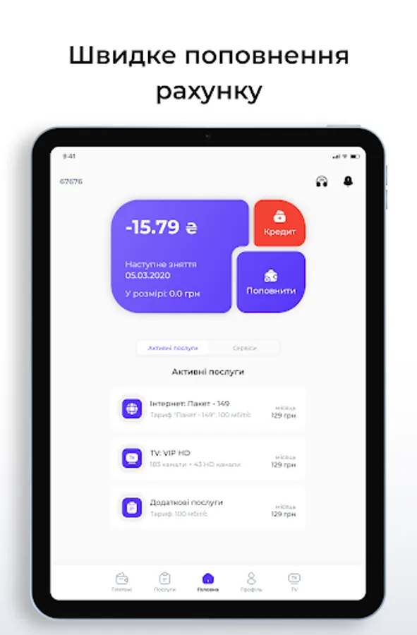 - the ability to change the tariff plan and activate subscriptions to additional services