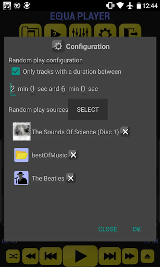 An option allows you to specify the minimum and maximum duration to only select tracks with a proper duration when using random play.