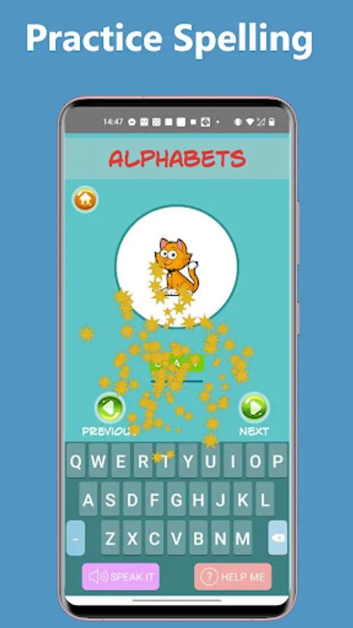 ✔️ Blank Spelling: Letters are placed at the bottom of the screen, but this time there’s no clue at the top!
