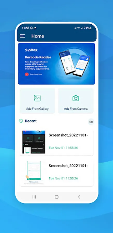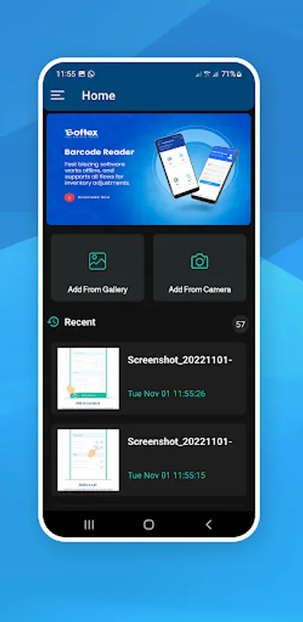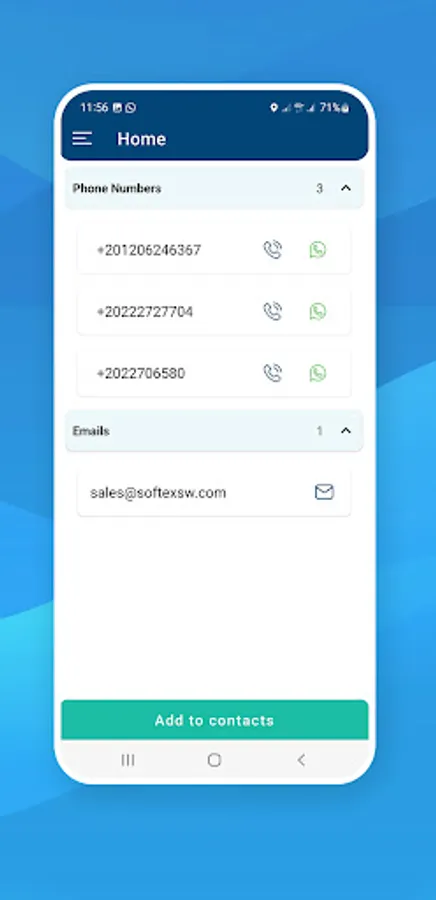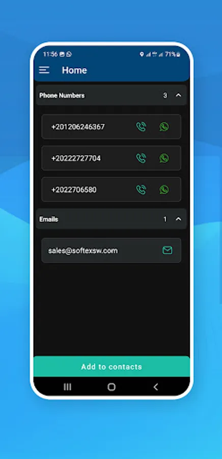 Take a photo with your device camera OR select form your photo gallery; the app. will extract the phone numbers and emails exist on the photo...