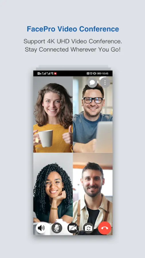 FacePro is an efficient and secure confidential communication, delivers superb quality multi-party calls with lowest bandwidth and latency, and supports up to 300 participants in a single MCU meeting! The AES 256-bit encrypted app has built-in features such as group chat, desktop sharing & whiteboard, conference management, chairman control, multiple screens, conferencing recording and live broadcasting etc. FacePro is saving more than 80% of communication and travelling cost, taking your productivity to the next level and revolutionize the vision of business operations, market development and maintaining customer relationships. FacePro helps companies to build an efficient global interconnected work team.