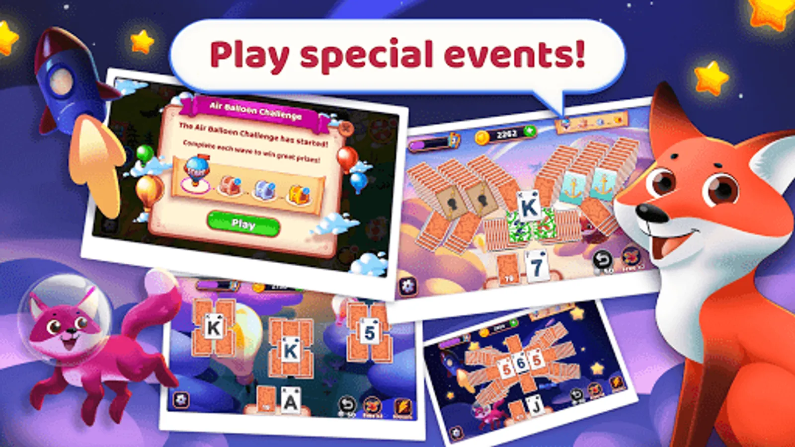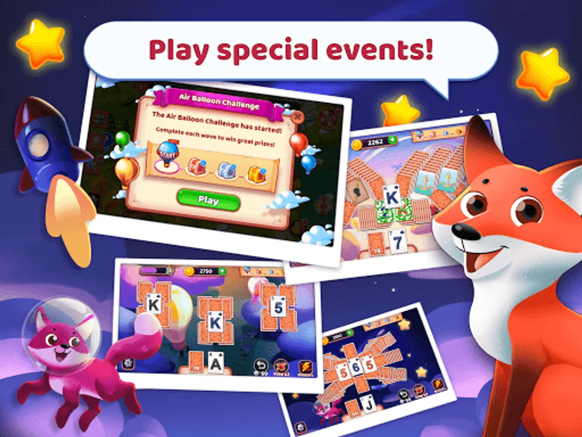Along with the beautiful vistas and famous landmarks, there are many more things to enjoy in solitaire▴ Story Tri Peaks: Every day you will have new missions to complete, and every week a new exciting Air Balloon Challenge awaits you! You can also unlock dozens of card designs, claim great prizes and win lots of coins every day on your journey through Solitaire Story TriPeaks!