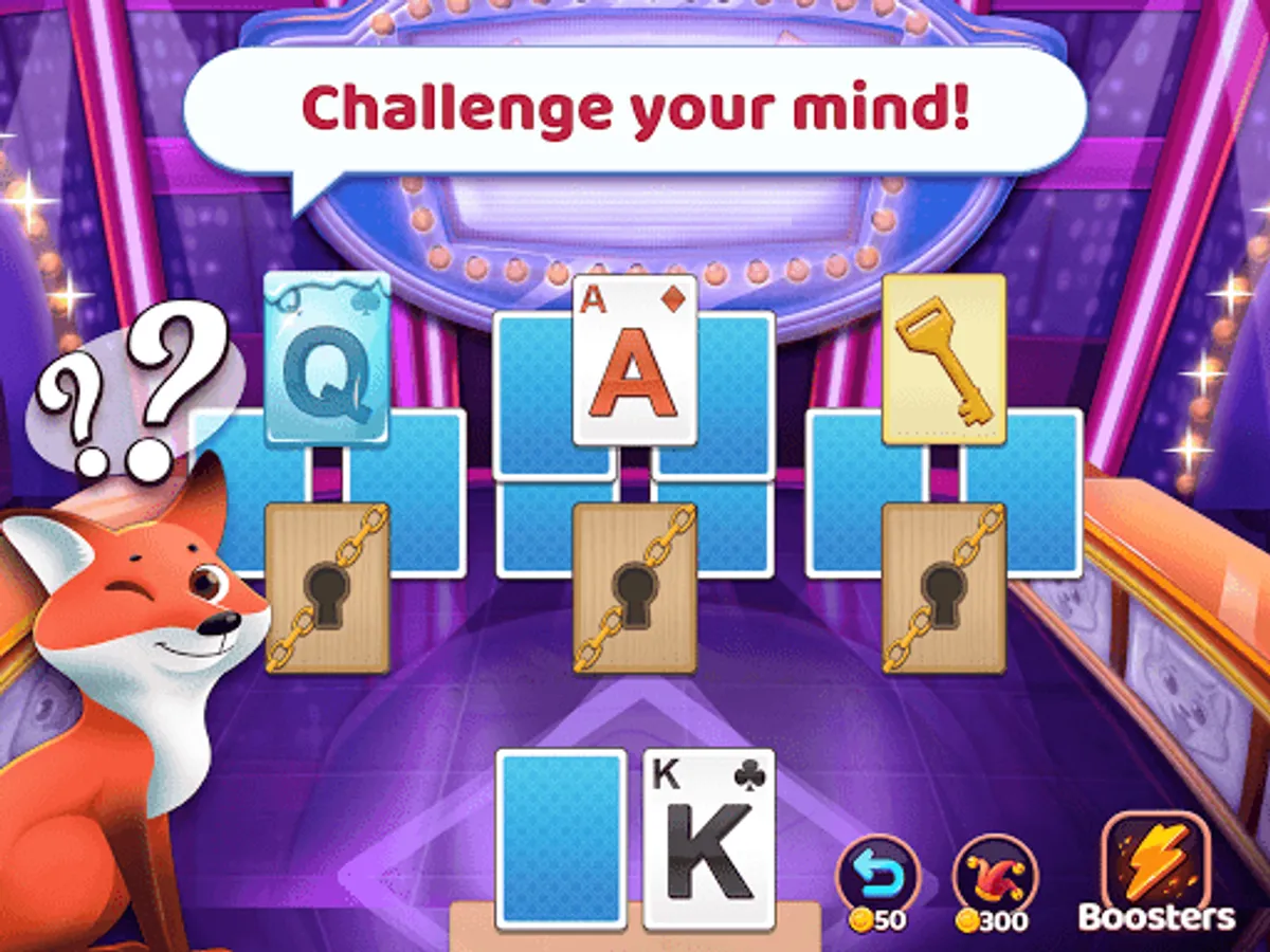 • Use exciting boosters like the Joker and TNT to easily remove special cards such as the freeze, bombs, fog and many more.