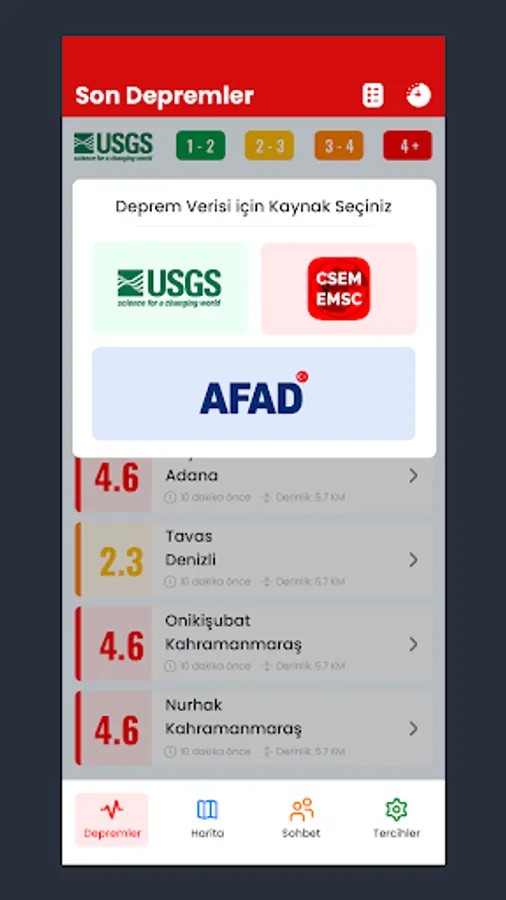 You can see earthquake data from AFAD, EMSC and USGS sources and receive instant earthquake notifications. Thanks to the chat in the application, you can benefit from organizations and earthquake aid announcements.