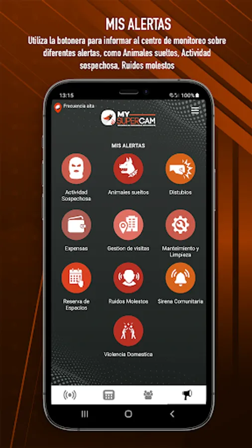 - Allows you to have alerts at the choice of the gated community/neighborhood, fully customizable alert panel so that residents and their families can communicate other incidents or emergencies, for example, loose animals, damaged lights, cleaning spaces, annoying noises, suspicious activity, among others. , through My SuperCam (MY ALERTS)