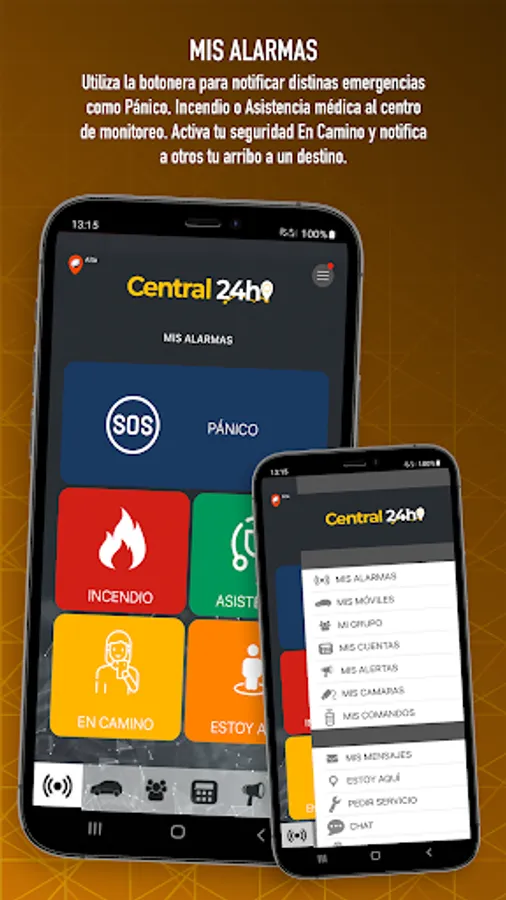 - Panic buttons for police, firefighters and doctors with geographic position notification, sound and images of your emergency (MY ALARMS)