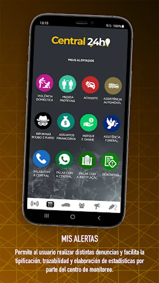 The App is connected to a service provider with a monitoring center, in a private security company or in a public government agency and sends alerts with a location map, photos, audios and video clips as proof of what happened.