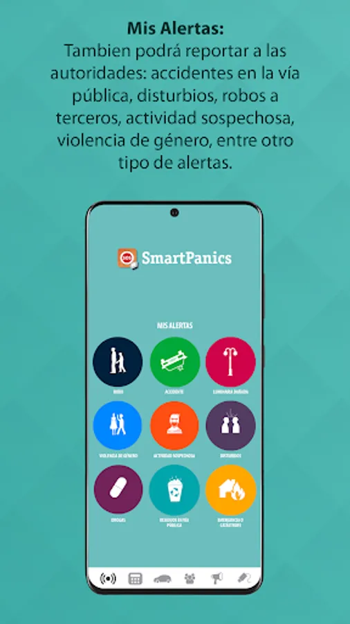 - Police, fire and medical panic buttonswith geographic position notification, soundand images of your emergency (MY ALARMS)