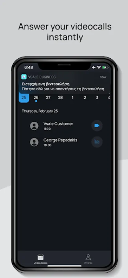 Vsale is a FREE greek app, that allows you to get in touch with all your customers through a videocall, as if they were in store for real! You can achieve and even increase sales online, without the burden and extra cost of creating and maintaining an e-shop!