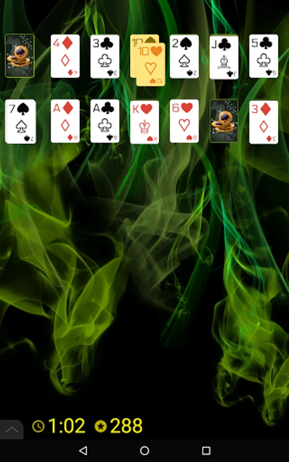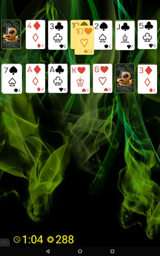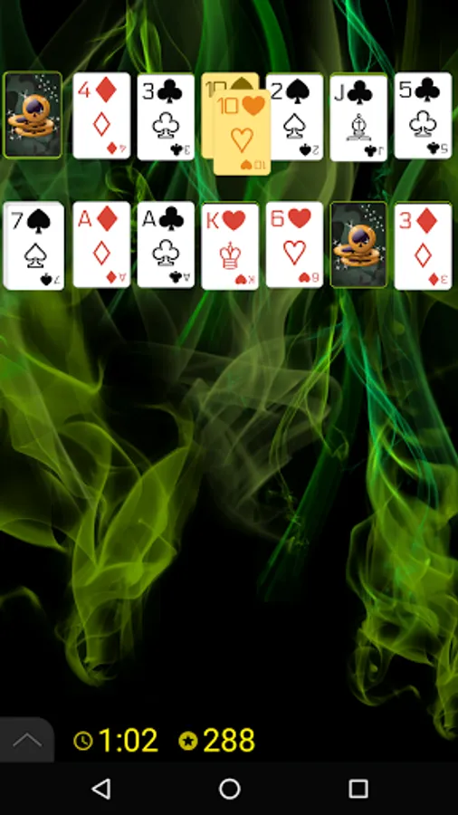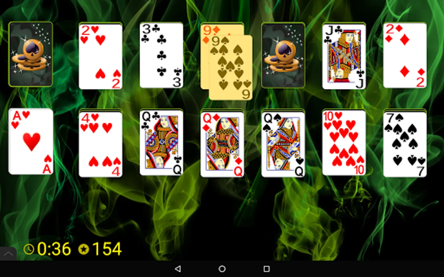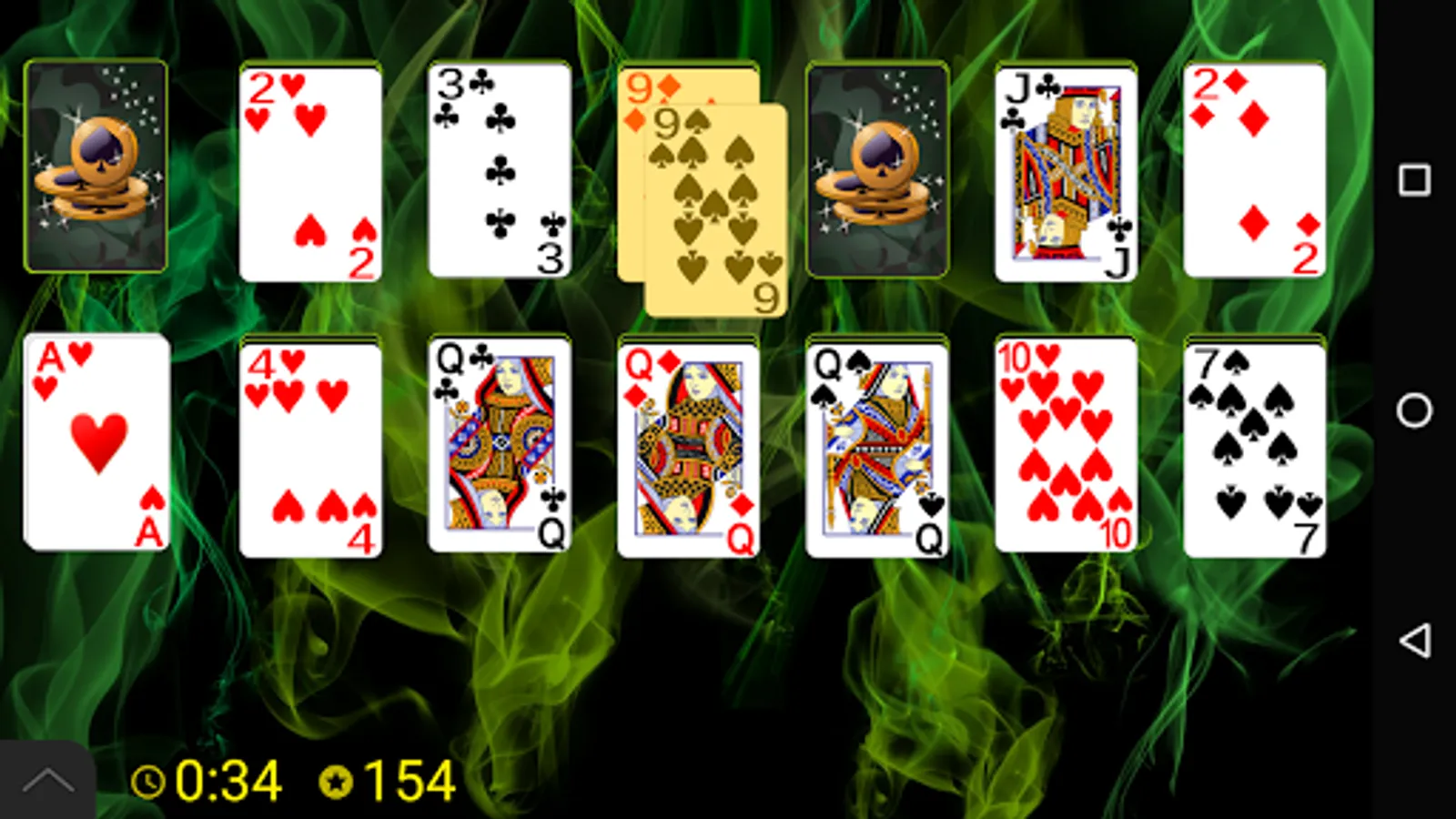 RULES: The goal of the game is to discard all the cards in pairs of the same rank. The top card of each pile is available for play. To discard pair just drop one card over another