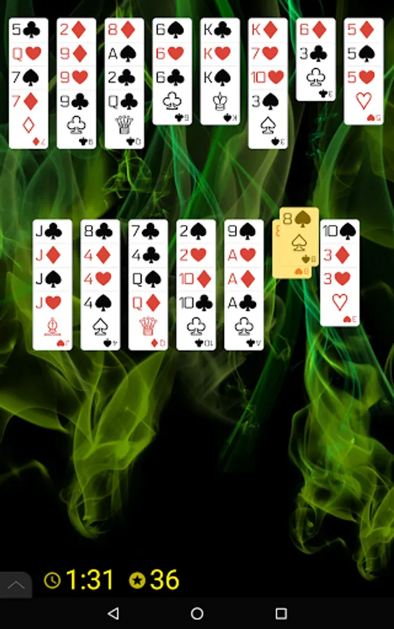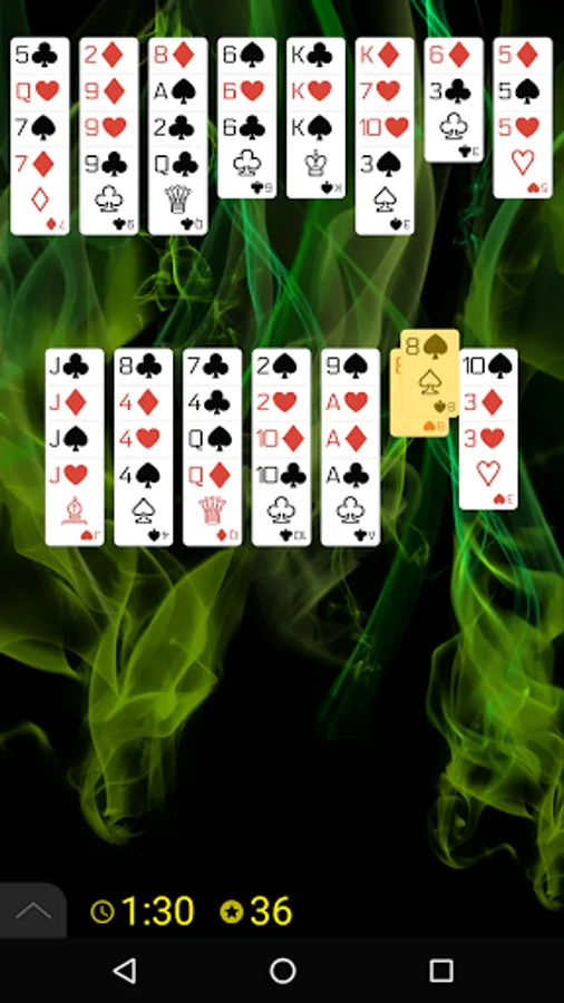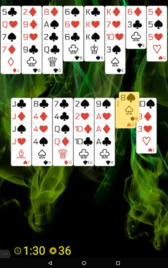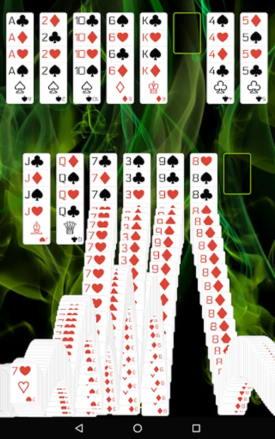 RULES: Build 13 piles of 4 cards of the same rank in each pile. You can drop a card to an empty column, or on a card with the same rank. Max 4 cards are allowed in a pile.