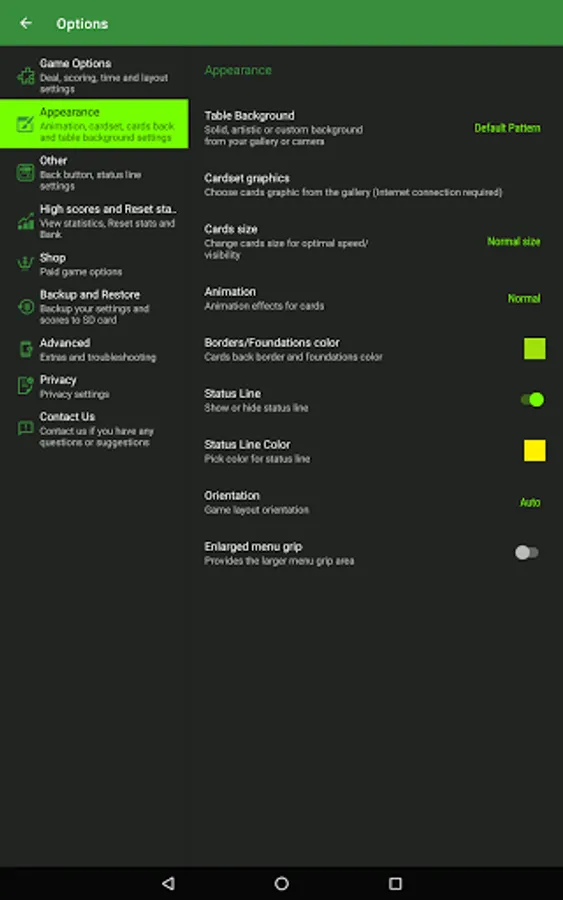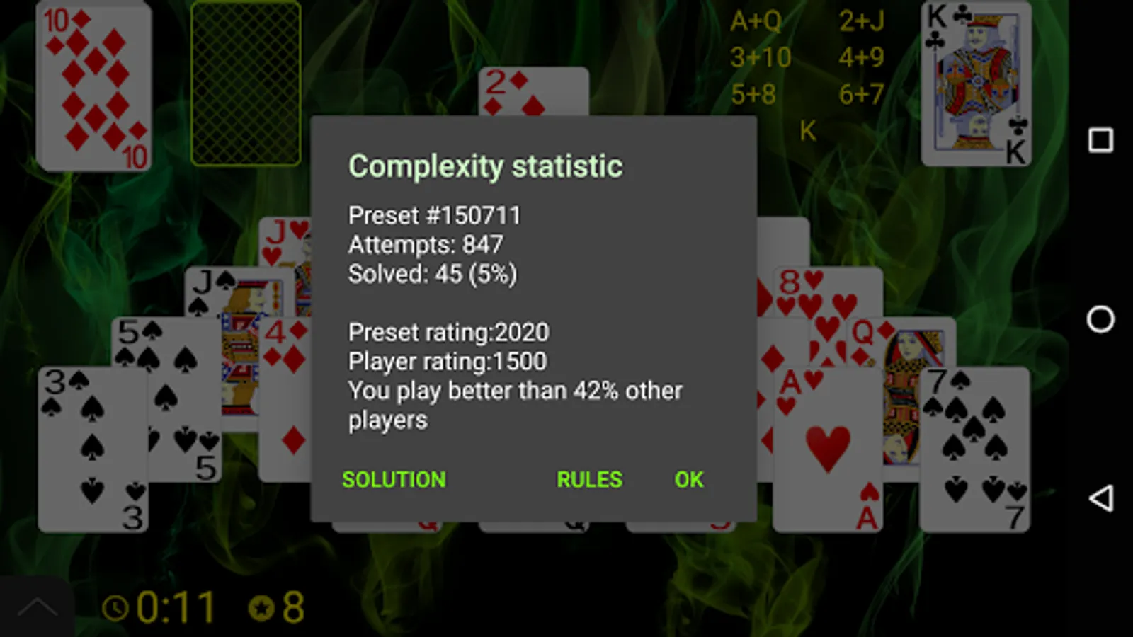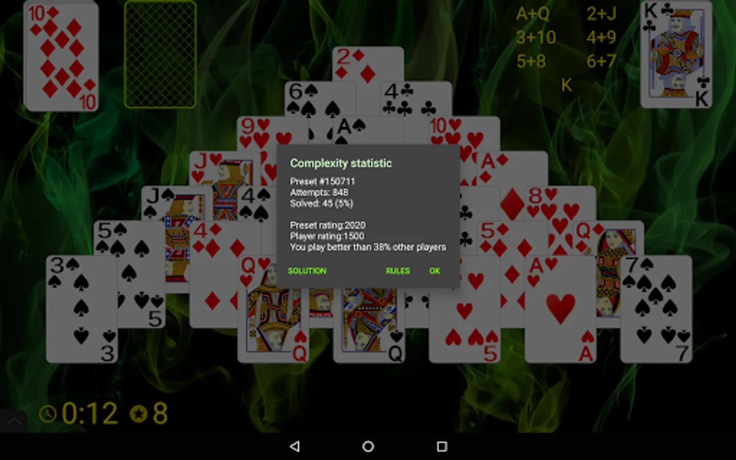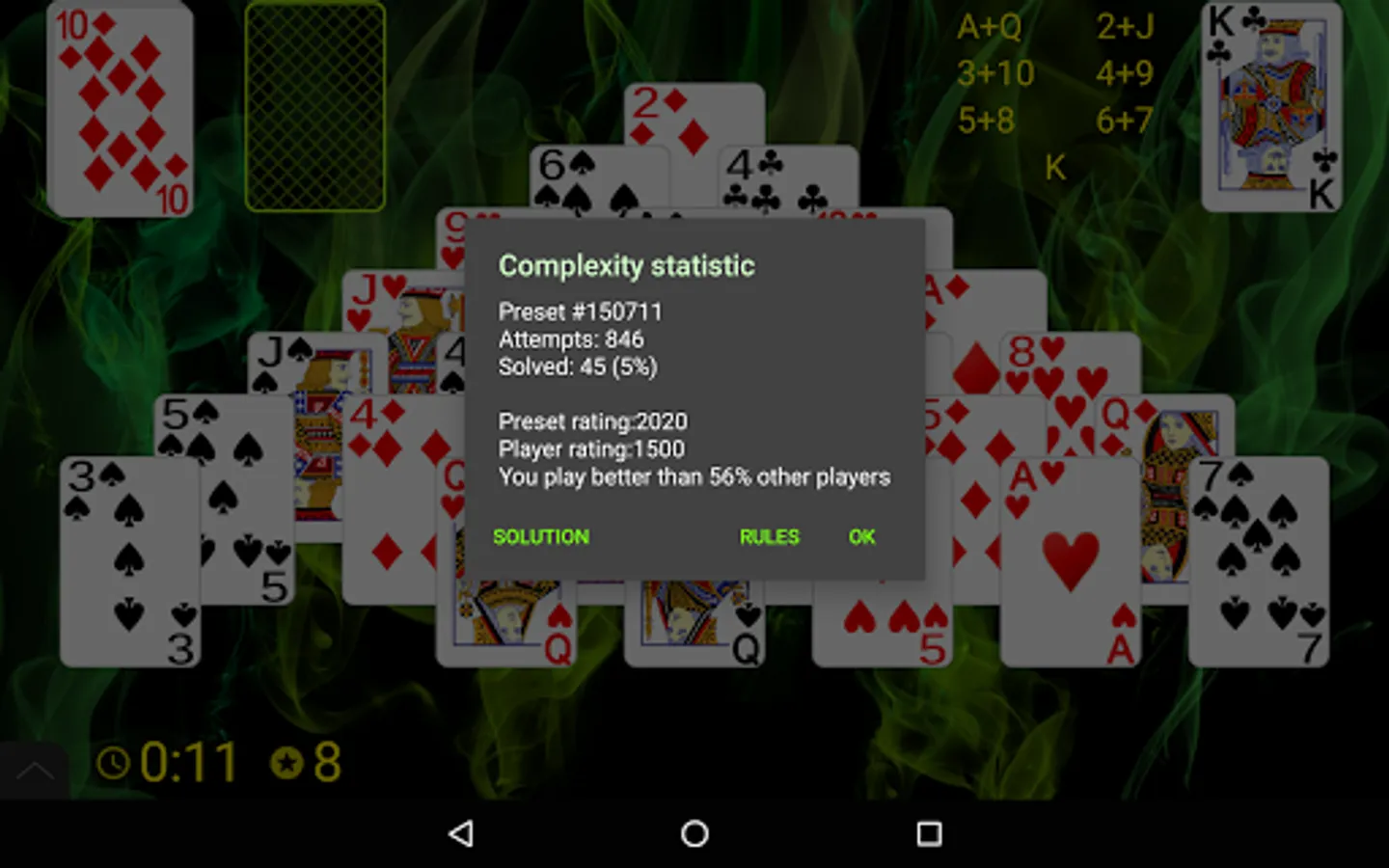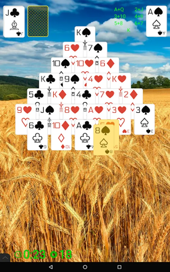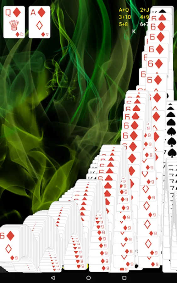 Pyramid Solitaire is designed specially for Android and provides 25 customization options. Choose the most suitable cardset, background, and tons of other settings to your taste! Build your own Pyramid: Use custom colors for elements and album photos for the background or cards back.