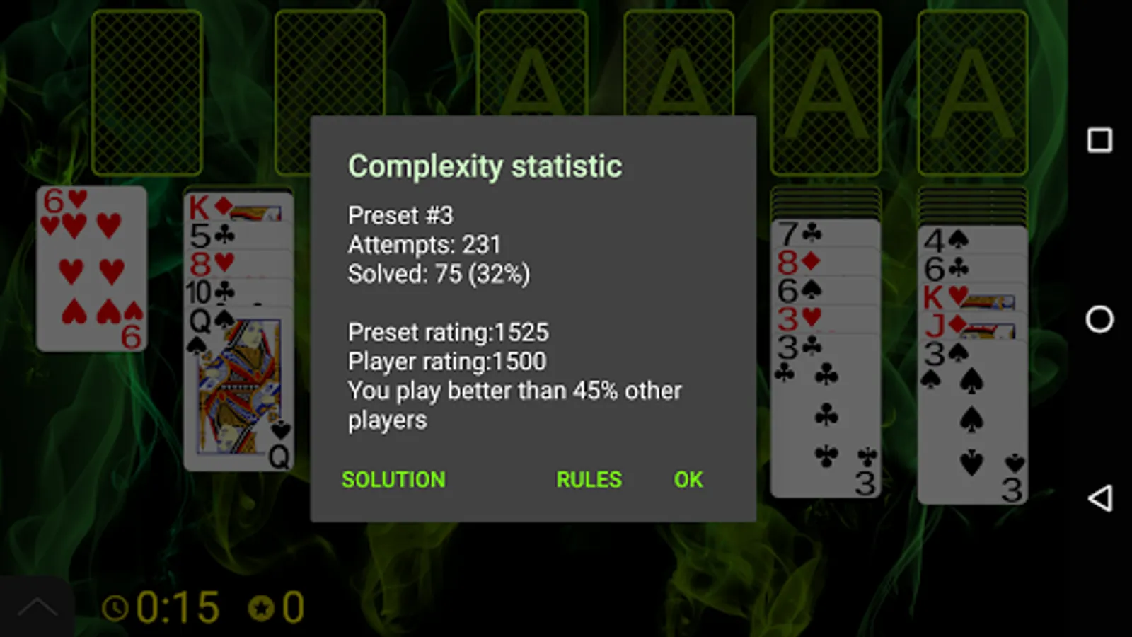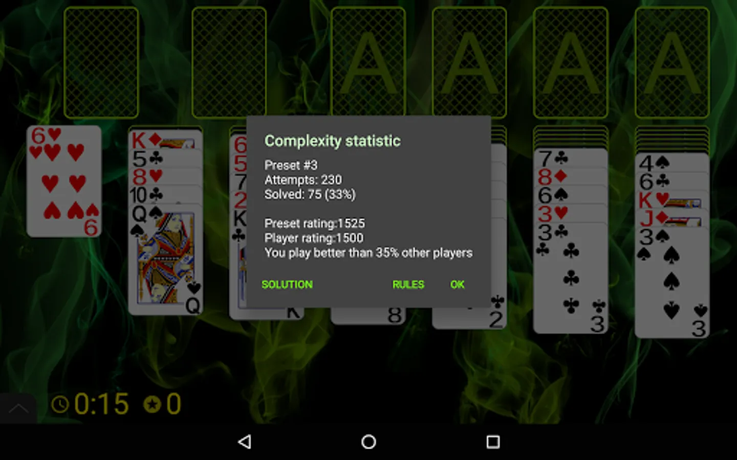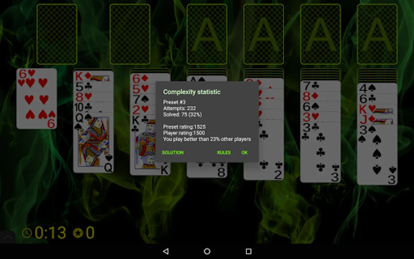 RULES: The goal of the game is to use all the cards to complete the four suit foundations, moving Aces as they appear. You have to build up each one in suit from Ace to King (A-2-3-4-5-6-7-8-9-10-J-Q-K).