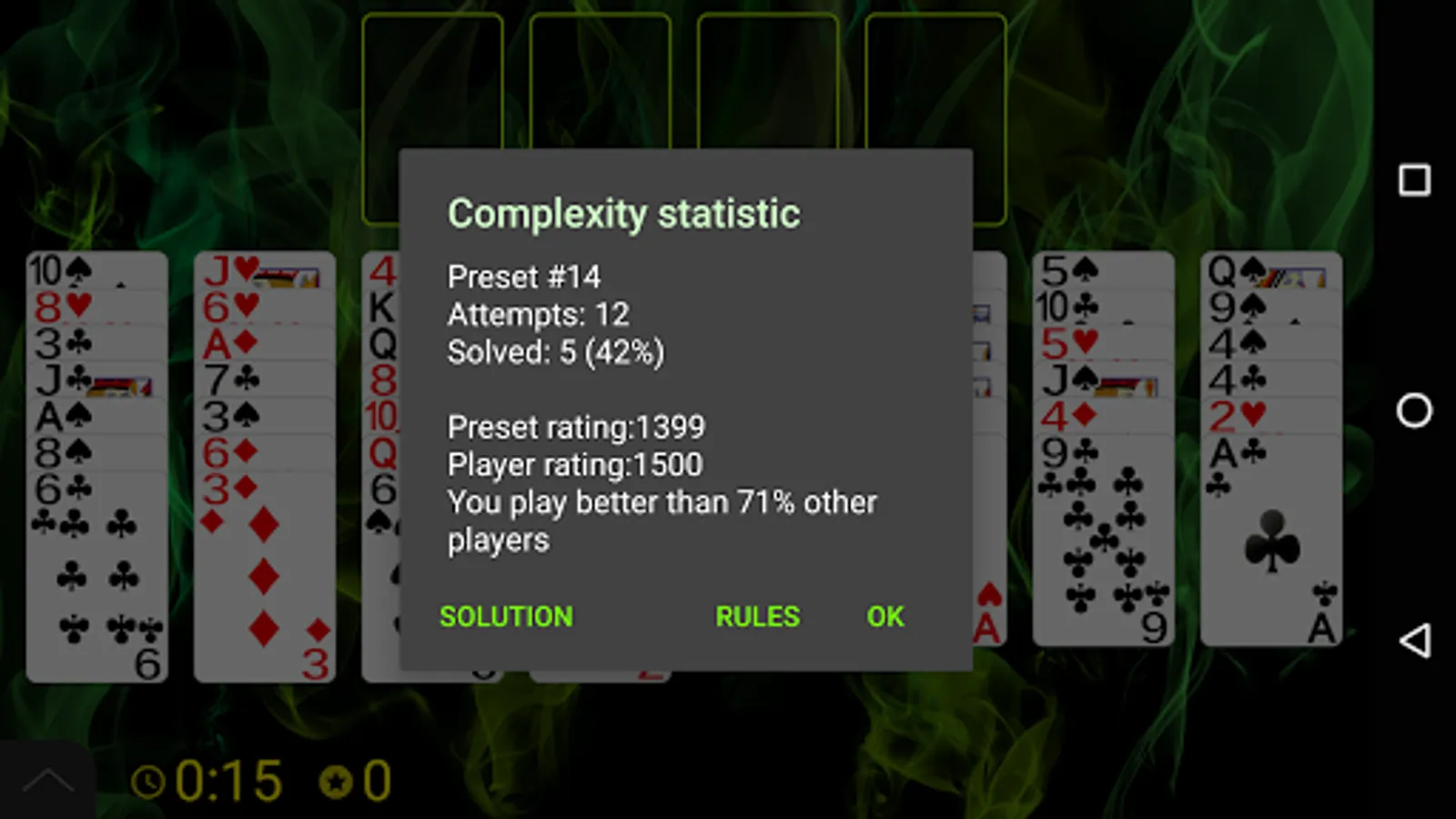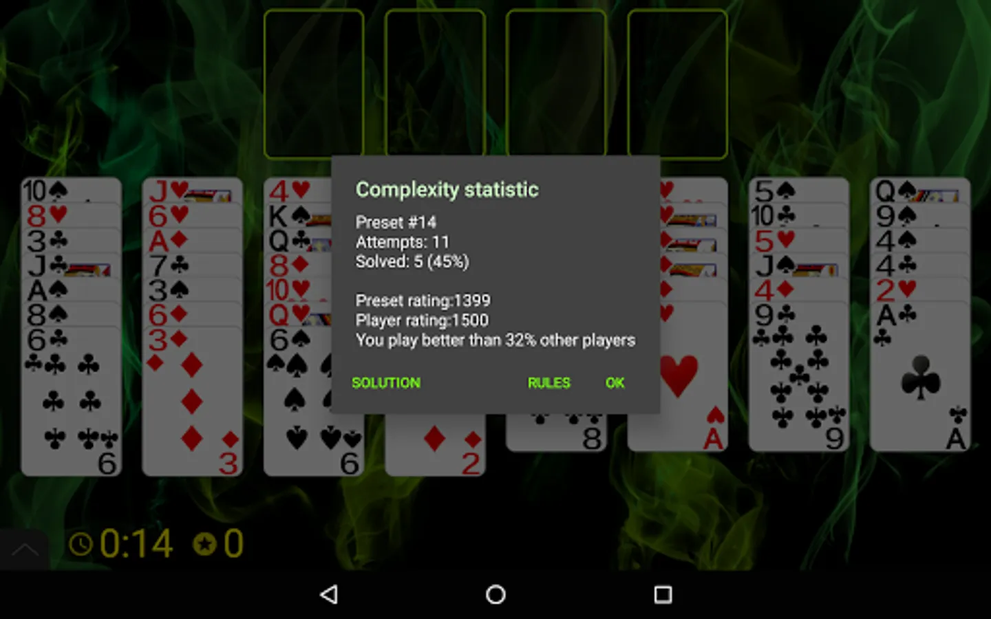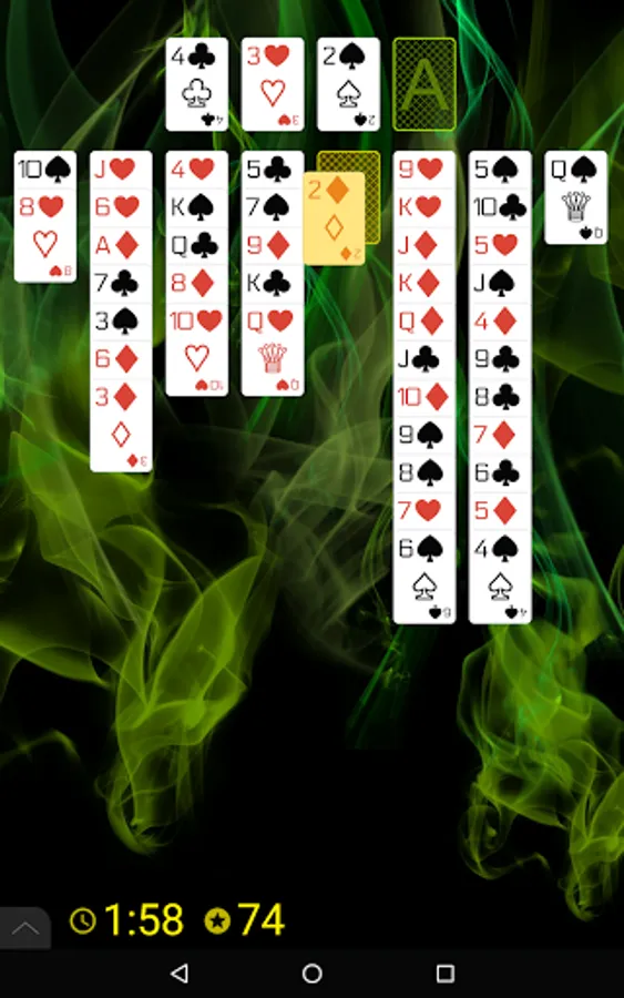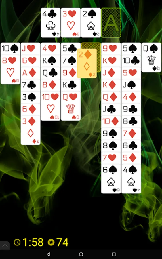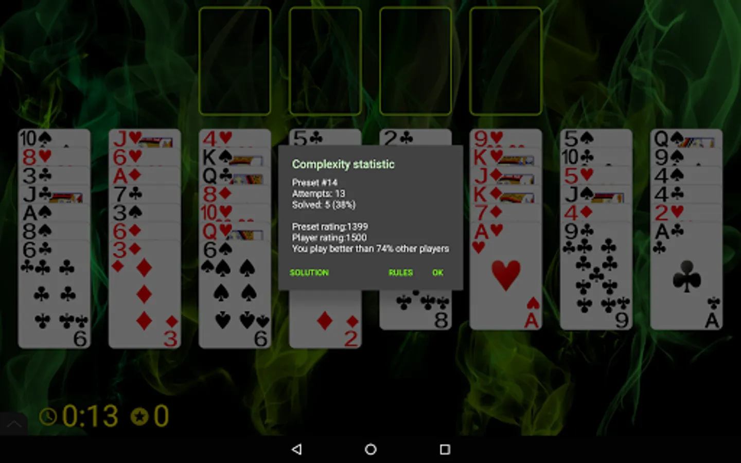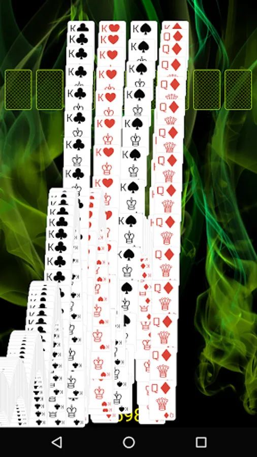moved to the first pile, wrapping K -> A, until each pile contains 13 cards. Tableau cards should be build in descending sequence regardless of suit. Put any card to an empty column, top pile card is available for play