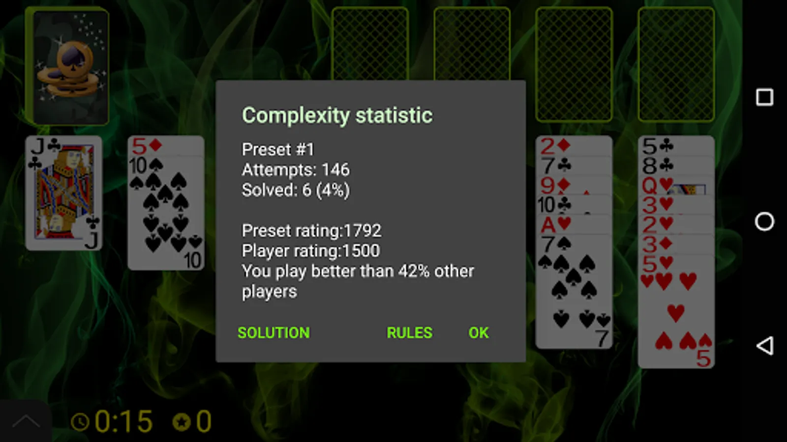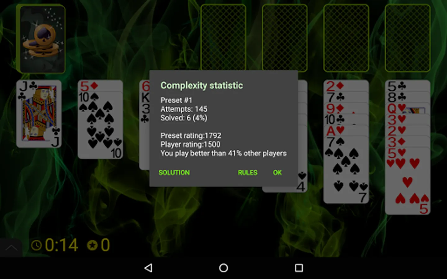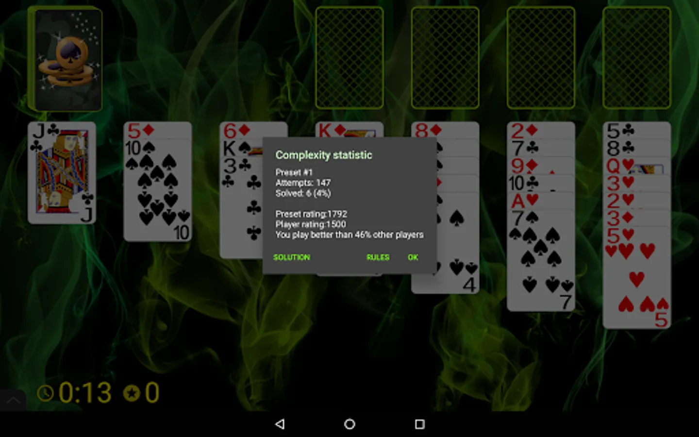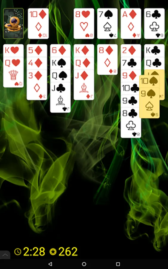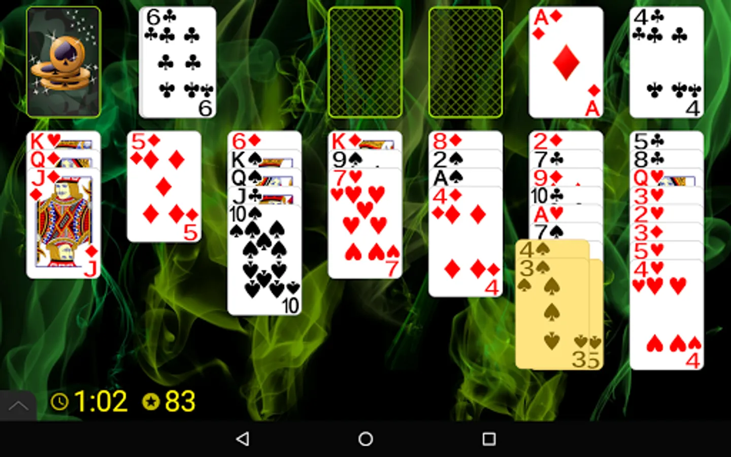 Face-up cards in the Tableau should be build in sequence down, in the same color. Move groups of cards if they are in sequence down, in suit