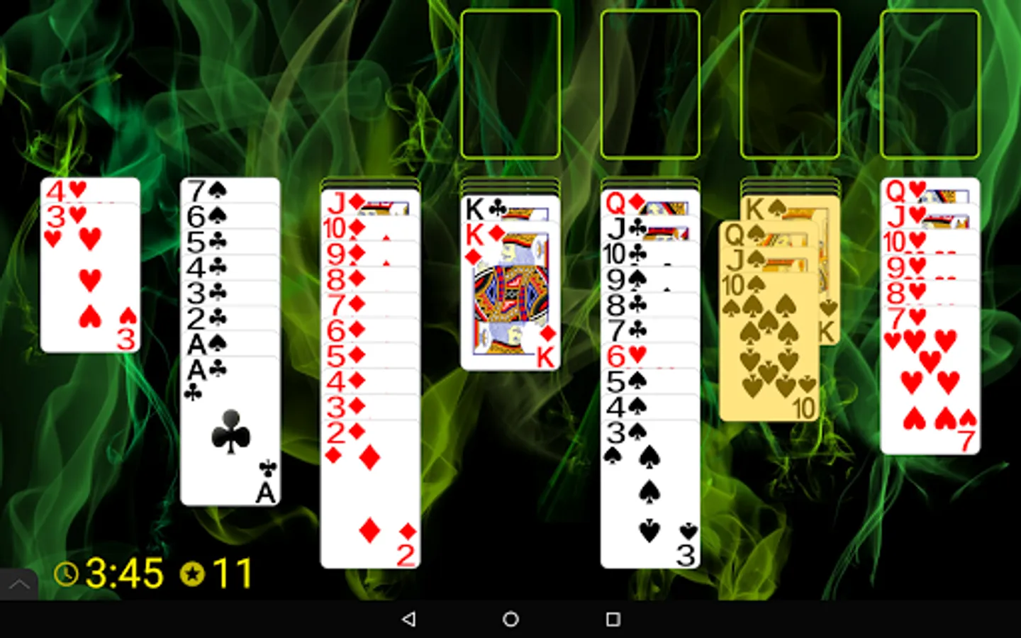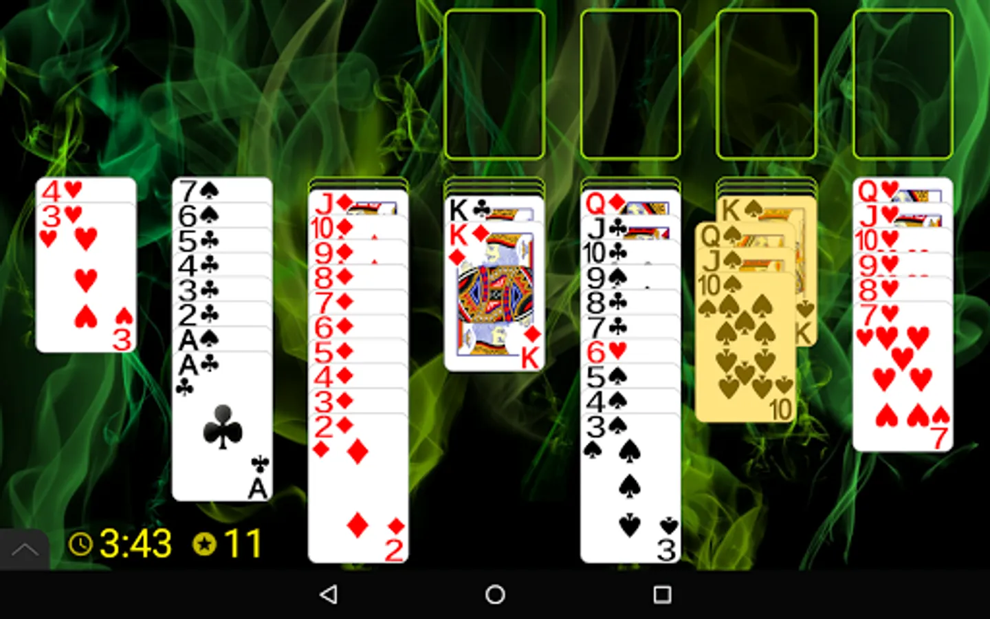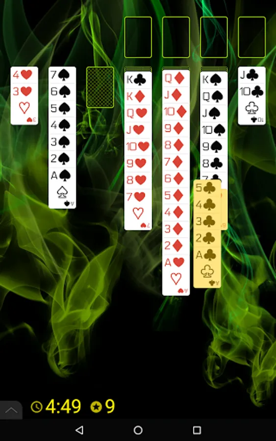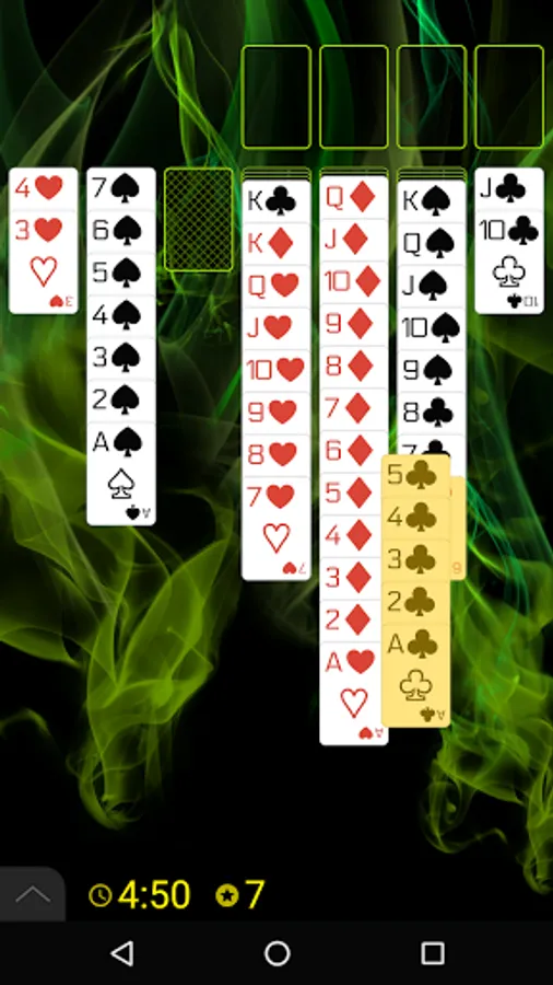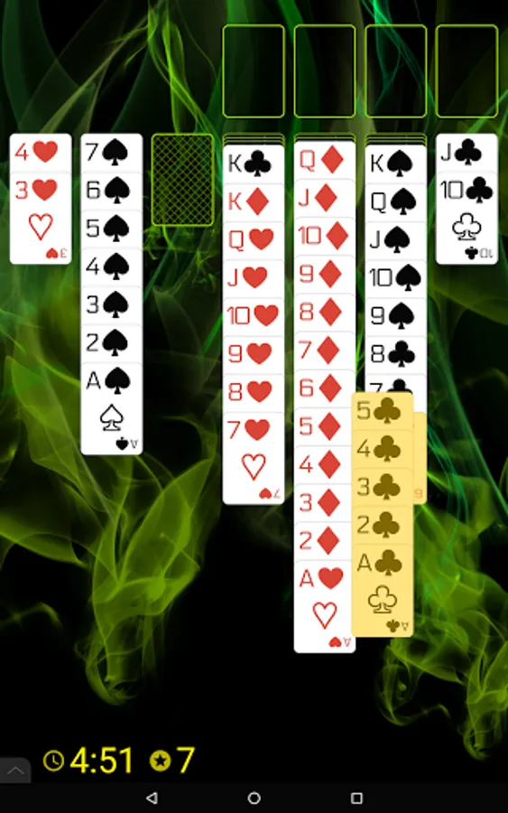 Click Stock to deal one card to each Tableau. All empty spaces must be filled before a deal.