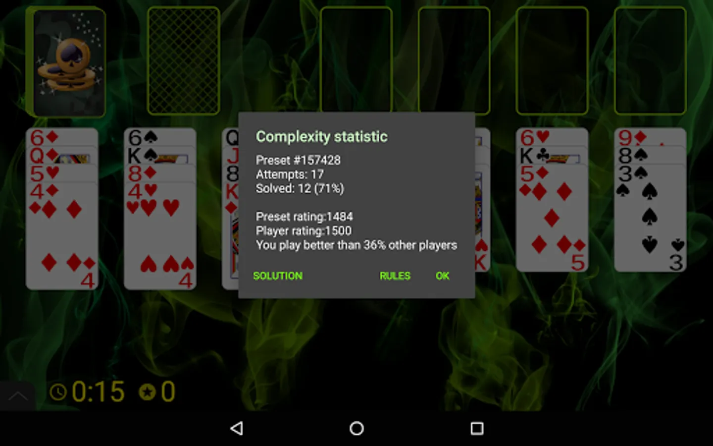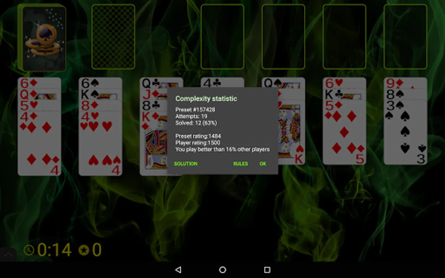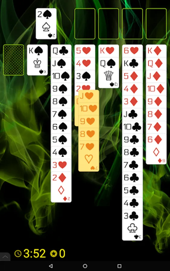 Click Stock to deal one card to each Tableau. All empty spaces must be filled before a deal.