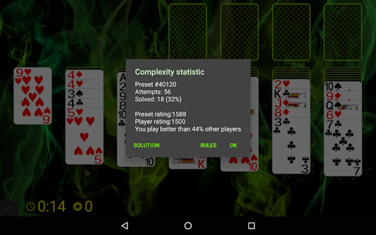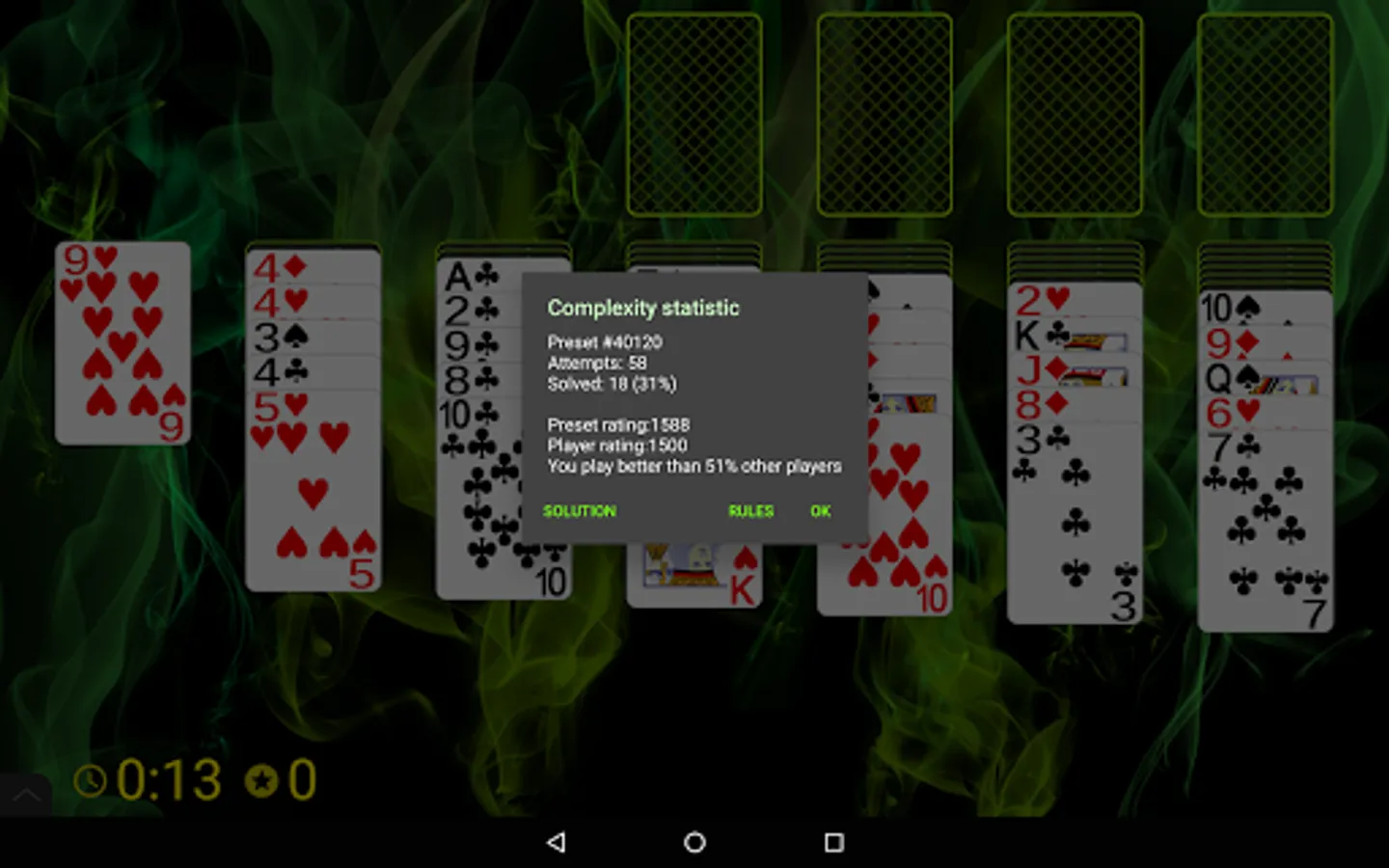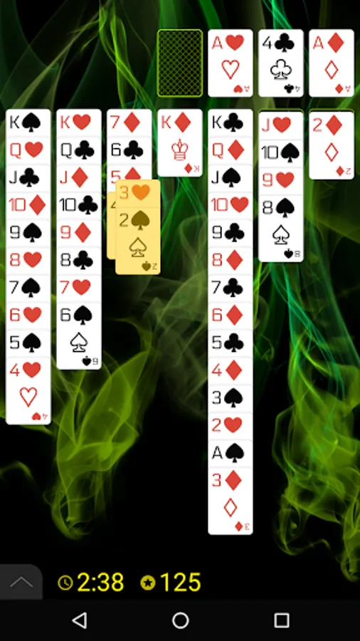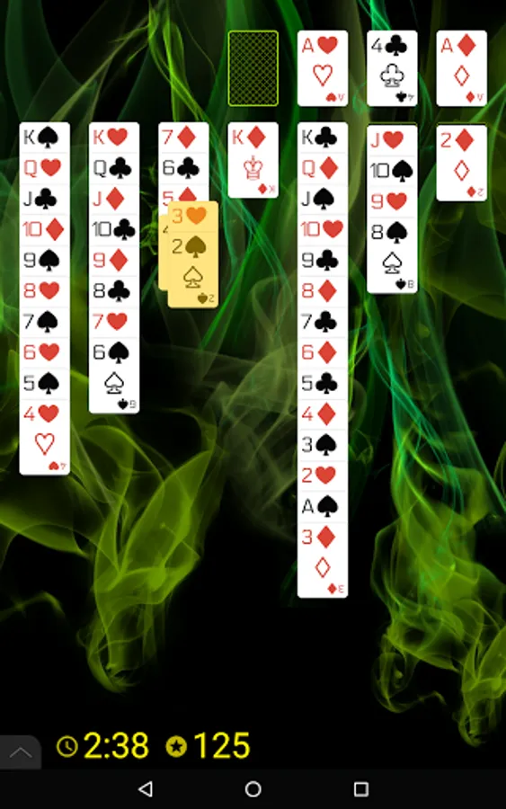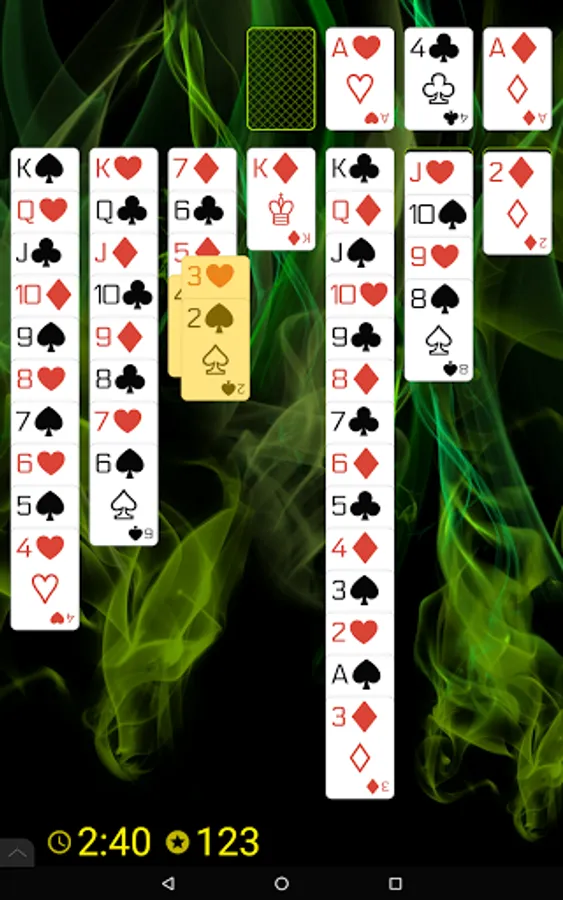 Face-up cards within the Tableau should be build in descending sequence of alternating colors. Move groups of cards if they are face up regardless of sequence. Put a King to an empty column, if such appears