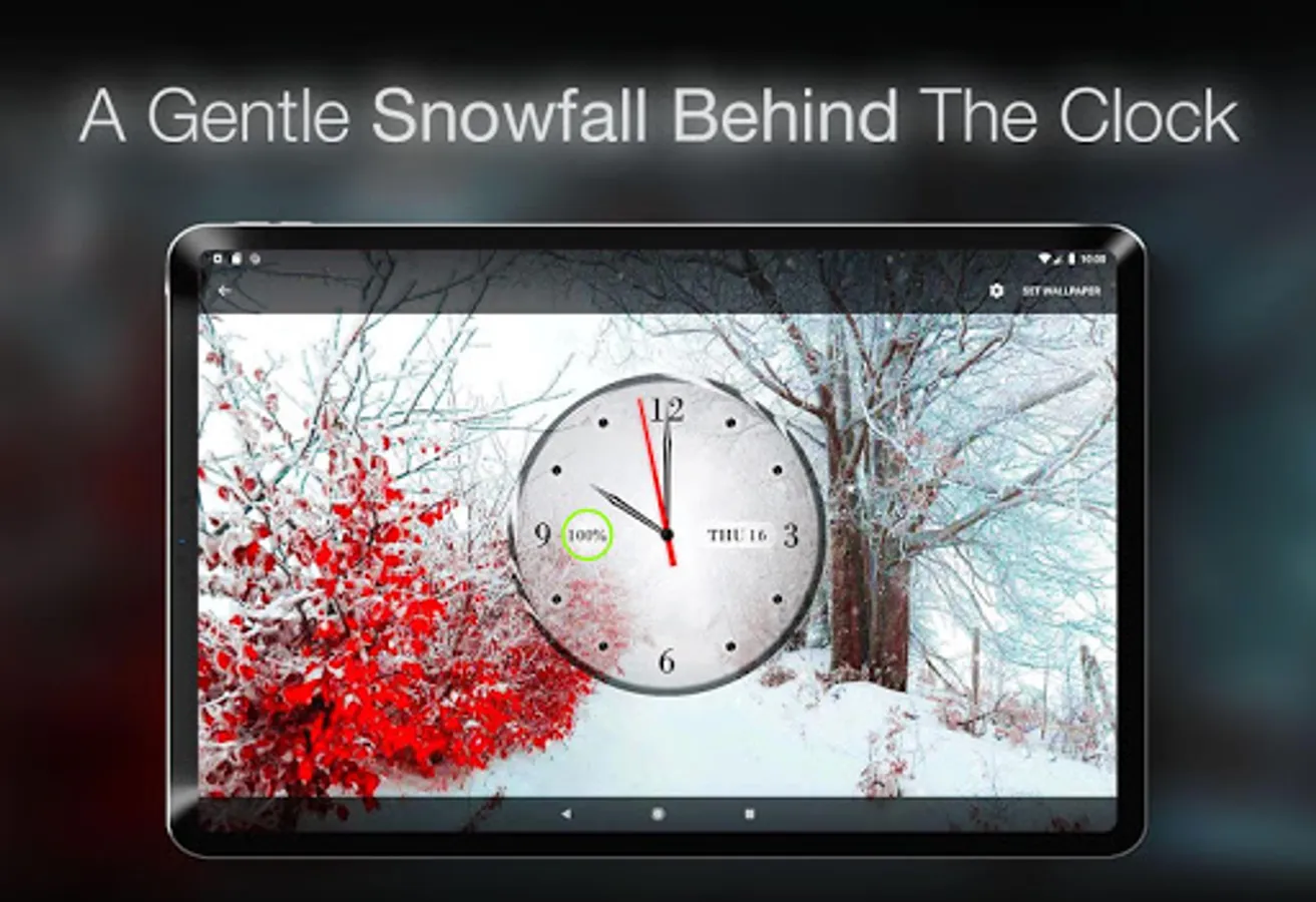 We are presenting here Clock Live Wallpaper, a lovely analog clock with a beautiful falling snow effect.