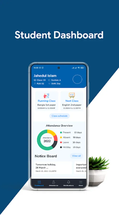 The daily class routine is highly associated with student academic productivity. Students will get to know the class schedule with subject lines.