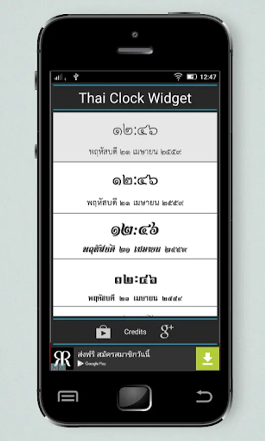 A simple home screen clock display in Thai numerals. After installing, use your device's Widget Manager to add the widget to home screen.