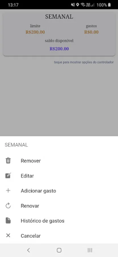 Create weekly controller: Determine a maximum weekly spend amount, first give the controller a name such as "Weekly spend" put in the system as "Limit". If you've already spent something when you created this controller, don't worry, enter the amount spent in the "Sum of expenses" field, then on a day-to-day basis, just add up the expenses by clicking on the "Add expense" button, this way the The system will automatically show you how much you have spent so far, which spending limit you have set and how much is left to reach this limit.
