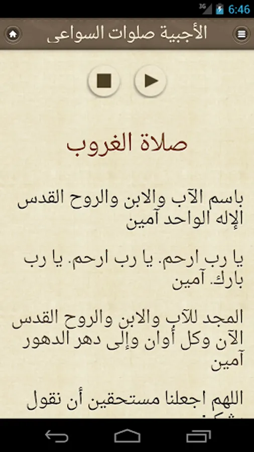 Text size can be changed to your reading preferences and the application offers easy navigation and control over both the audio and text. The application includes various prayers besides the Agpeya for your complete needs.
