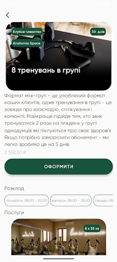 — Booking in 2 clicks. Choose the format (group / duo / personal) and location — studios at 2a Kotlyarevsky St. and 26 Pylypa Orlyka St.