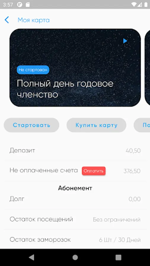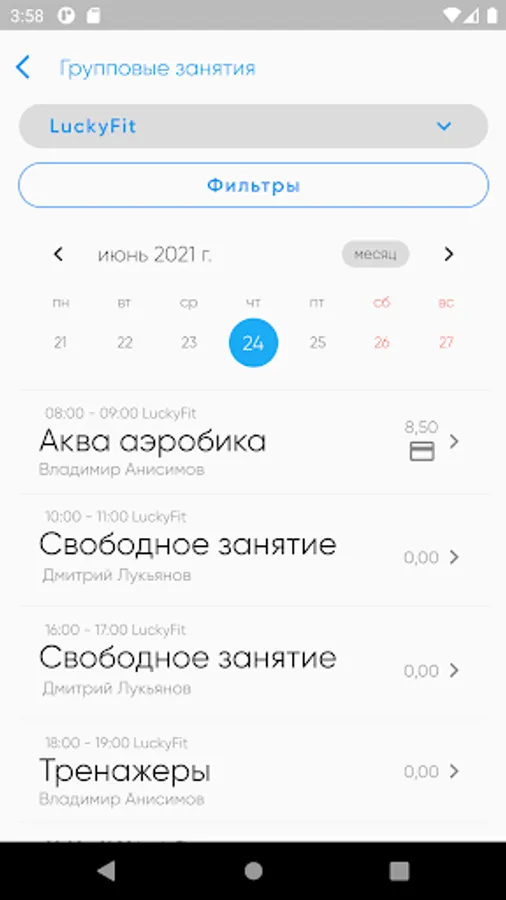 - if you are a client network a fitness club, you can see the percentage of load on each of the network of clubs and plan visits based on this index