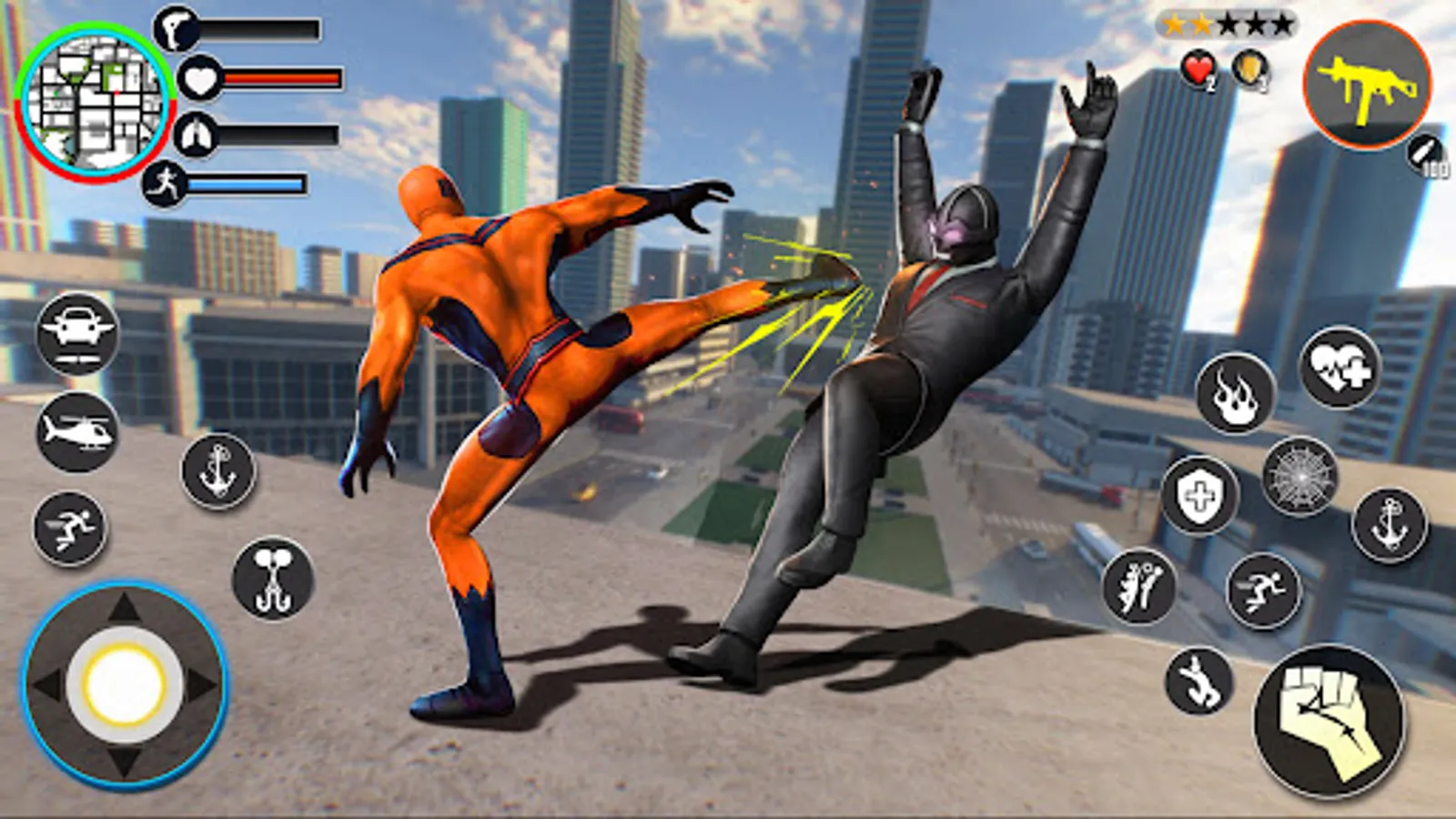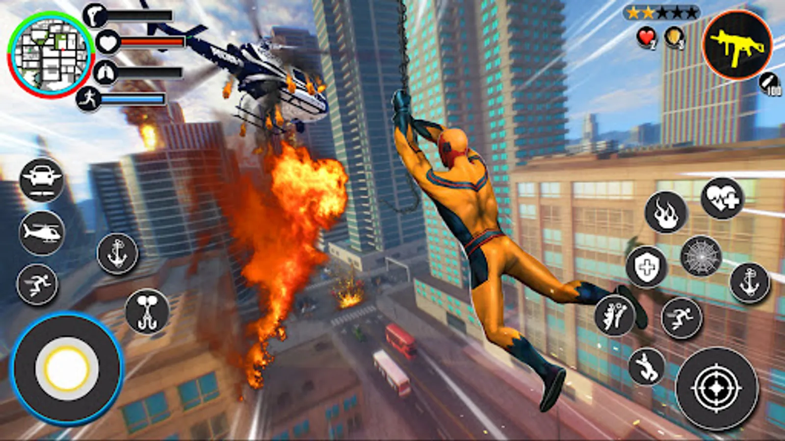 This fantastic real superhero vs gangster game with thrilling superhero power fights is designed and developed for the open world gangster city action. use the fantastic flying hero power to save the people and rescue them. showcasing your hero's impressive abilities and fighting skills in a free gangster escape and gangster survival game.