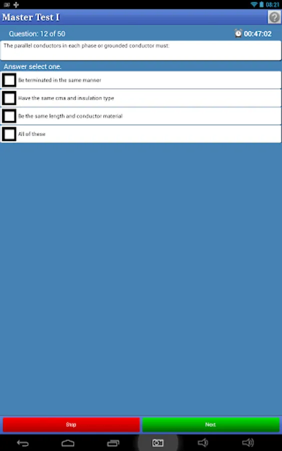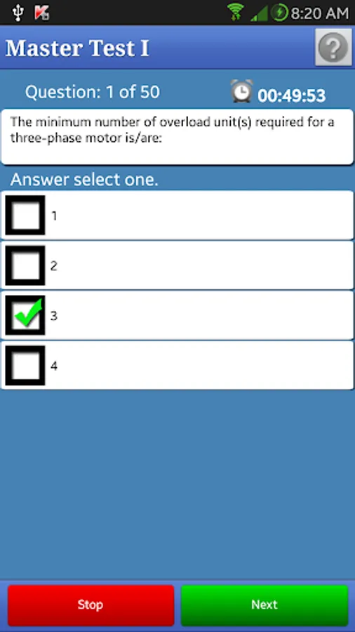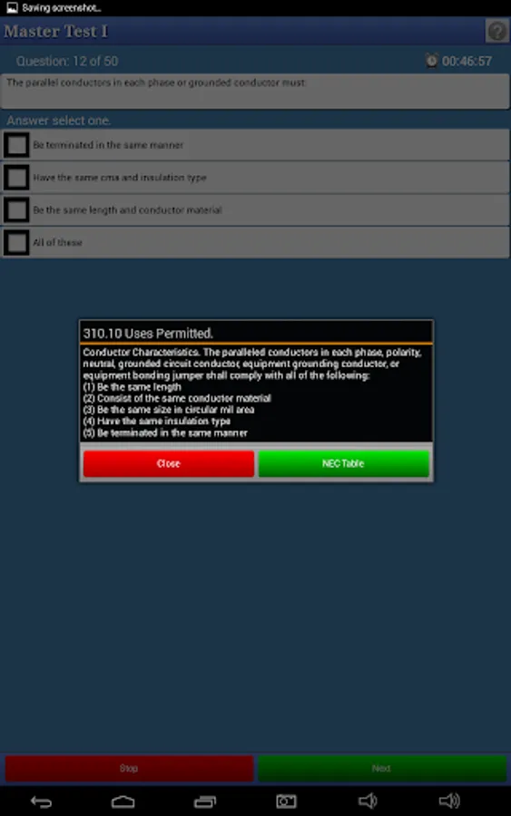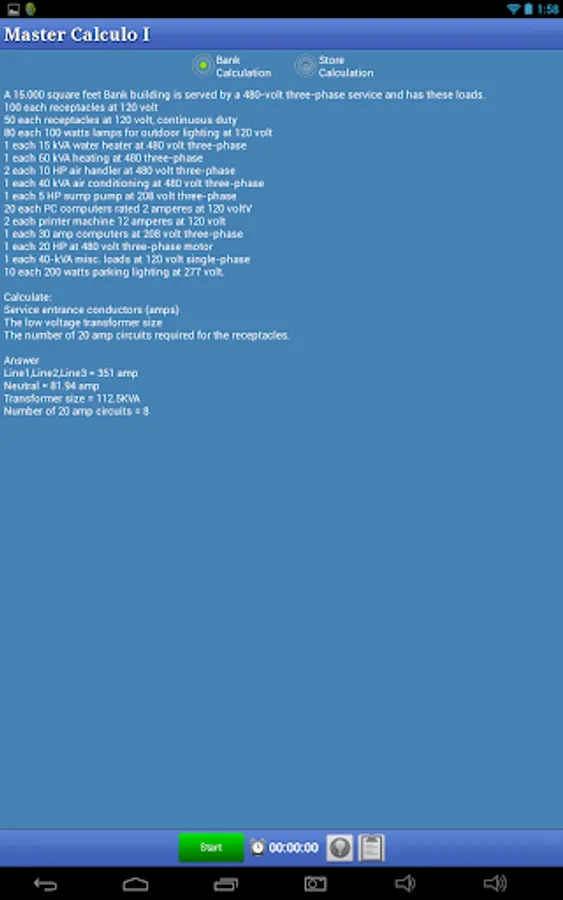 Each test consist of 50 NEC questions or two load calculation problems.