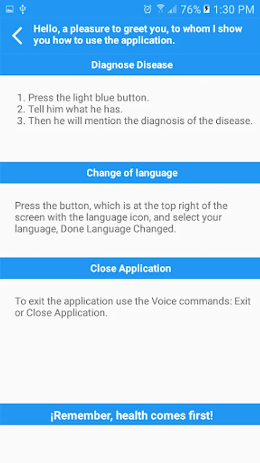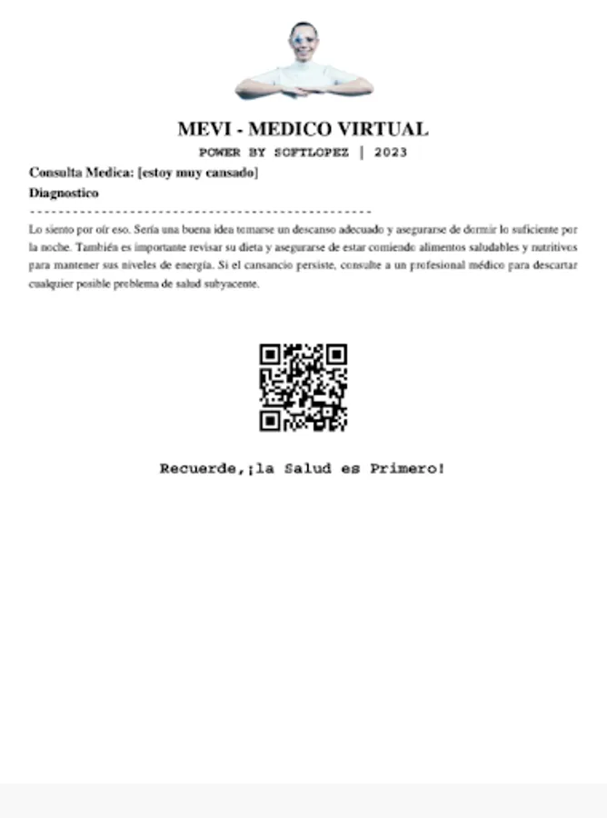 Sample Diagnosis about the Disease that the patient Asks the Virtual Doctor, the Interaction is carried out by Voice command, in the languages of English and Spanish.