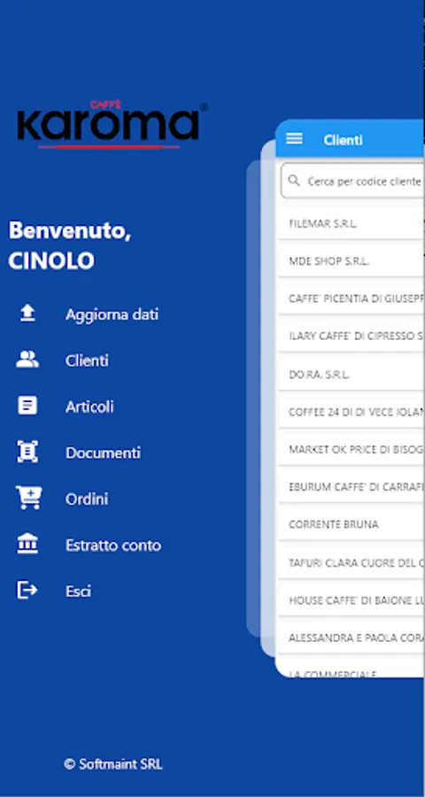 The application allows agents to manage their associated customers and possibly create orders that are sent directly to the Feio management system.