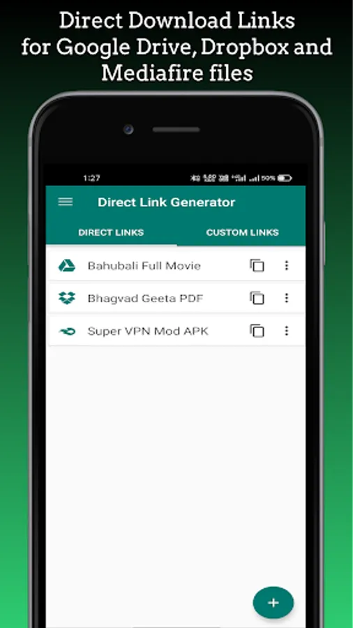 This feature is very useful for web developers and YouTubers This tool can create direct download link from the source link which is provided by cloud storage services. App currently supports three service 1. Google Drive, 2. Dropbox and 3. Mediafire. You can give file sharing link from these amazing platforms and app will give you direct download link for the file.