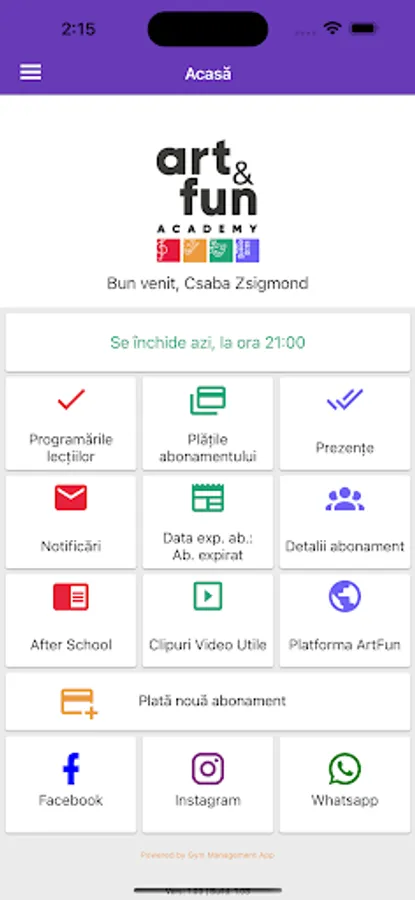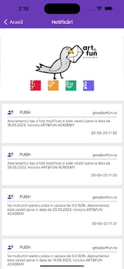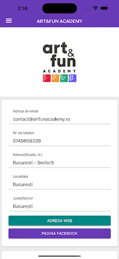 ART & FUN is an application dedicated exclusively to the parents / guardians of the students who physically attend the courses of the ART & FUN ACADEMY School of Music and Theater (www.artfunacademy.ro).