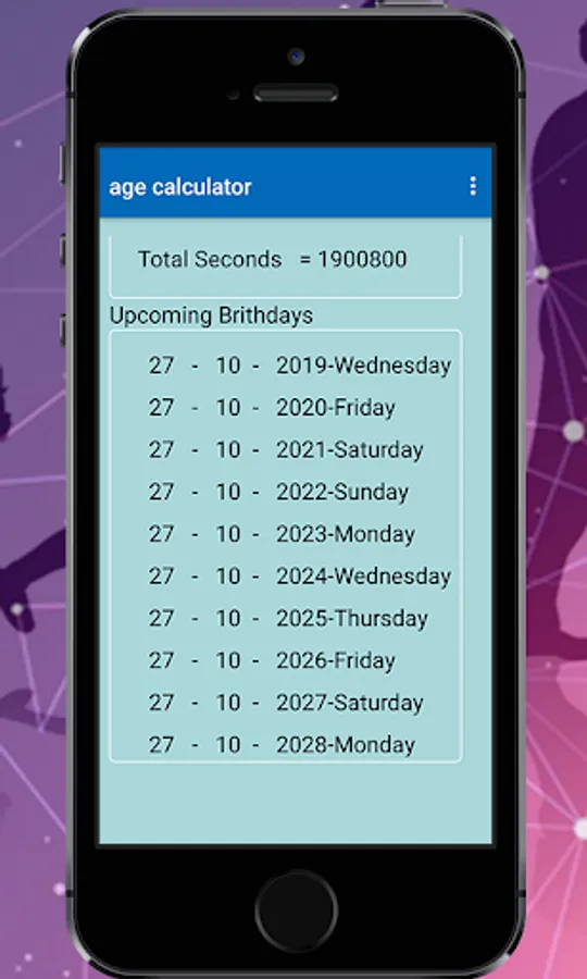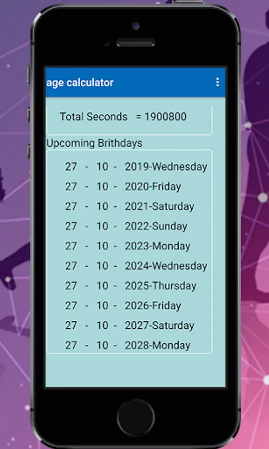 Age calculator is android application that calculation of date of birth. Age calculator is also show your coming birthday. Age calculator is amazing and splendid feature that shows current date and you can enter your birth date in the calendar. And then Age calculator will be calculate accurate and shows you date of birth, and also shows coming date of birth. Age calculator have also calculate your age into total years, also convert into total month and total weeks and total days. They have also feature to convert your date of birth into hours, and mints and second amazing feature of age calculator. You can also save your date of birth and save your birthday format. The age calculator app have also feature that shows notification quickly in your birthday.