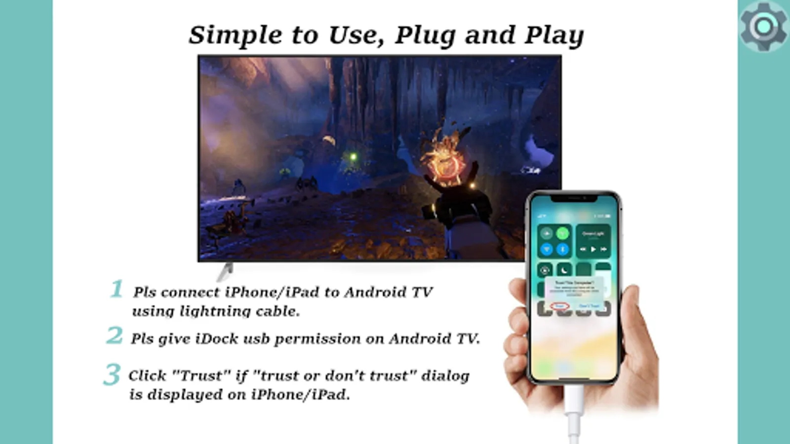【Plug and Play Technology】Easy installation within 2 minutes, just plug your iPhone/iPad into your Android TV using lightning cable, then click the "Trust" button when connecting and then wait it to connect automatically.Please make sure your Android TV have usb port so you can connect with your iPhone/iPad using lightning cable.