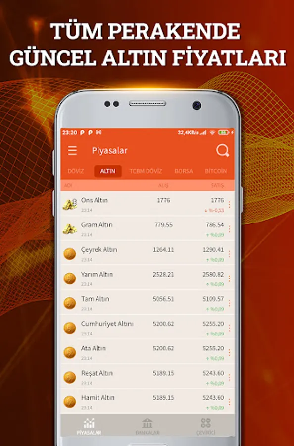- You can follow the free market and bank trading prices and daily changes of the gold types on sale.