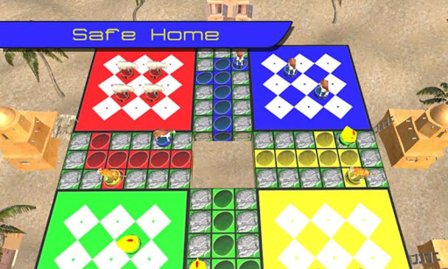 Every player in this game has 4 pieces which begins in the Home position. Roll the dice to move each piece around the board. On the way to complete goal, you have to abstain from being caught by different players, while you attempt to catch different players pieces and knock them back to their Home position. Get all your 4 pieces to objective before your opponents.