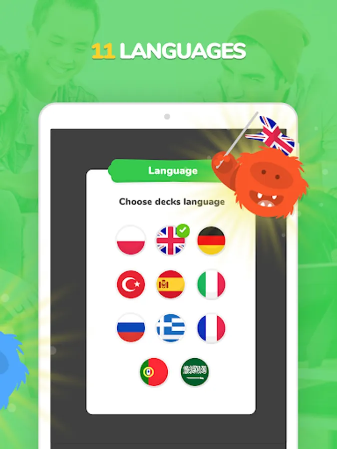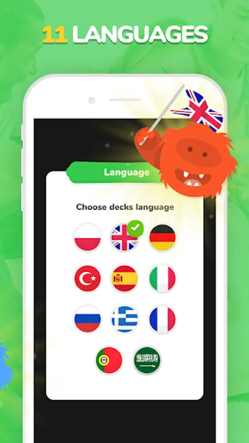 In the game you will find cards in 11 language versions: Polish, English, German, Turkish, Spanish, French, Italian, Portuguese, Greek, Russian, and Arabic.