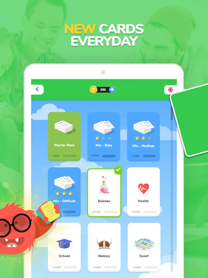 Playing the mobile "Guess who you are" we can choose between(...) categories, including: