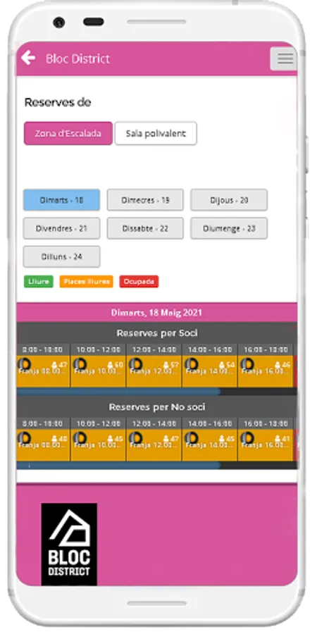 Manage your reservations at the BlocDistrict climbing wall and other activities.