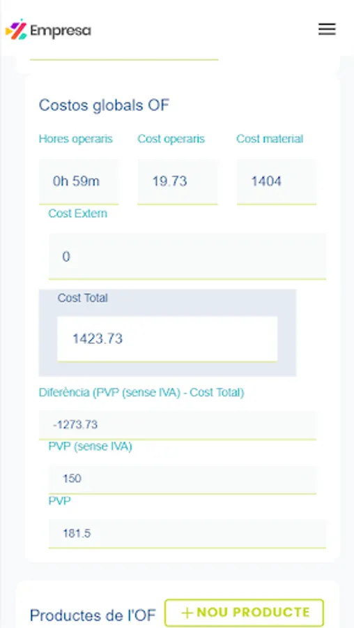 Cost control system, time control, manufacturing, purchasing and warehouse that adapts to your company and all linked to your current invoicing system