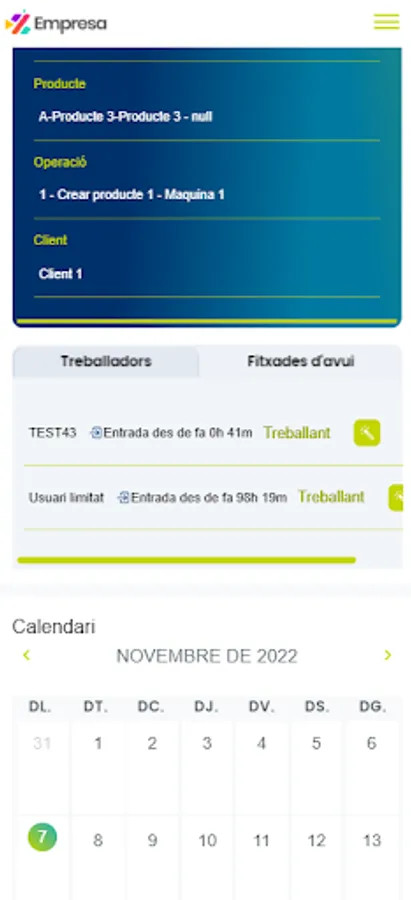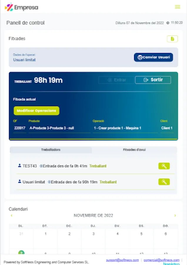 Time control system of the working day complying with current legislation. Registration and control of the working day, location of signings, calendar and vacation management, project control.