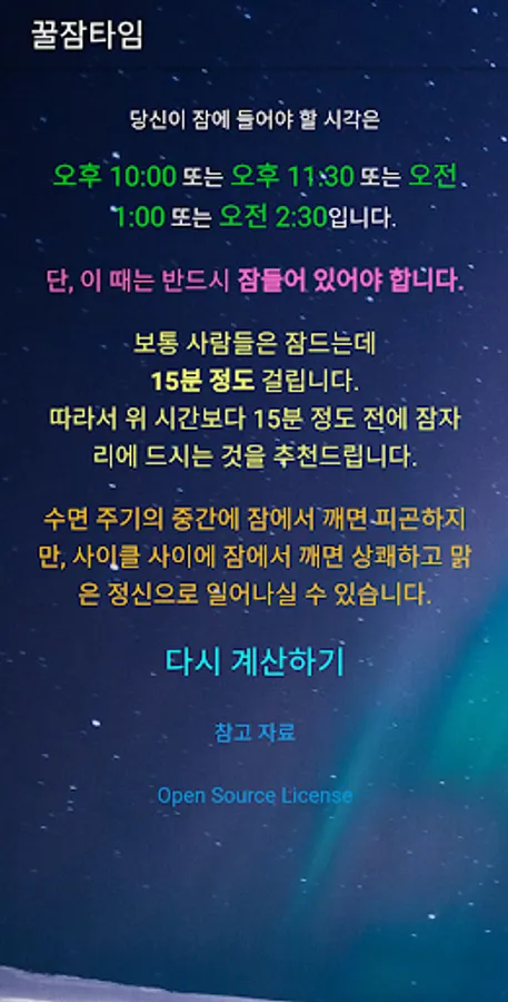꿀잠타임 - 수면 시간 추천 앱 Screenshots