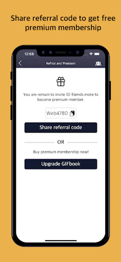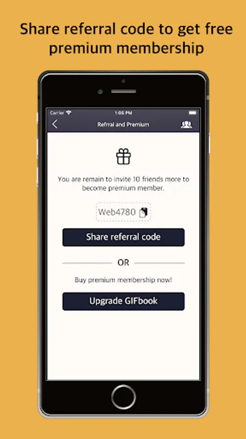- On 10 users registered based on referral code, users will get automatically free membership of this GIF maker app.