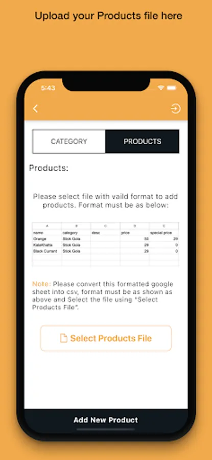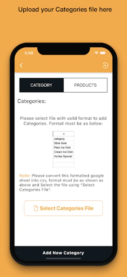 Owners of this app will select product categories and product files in specified format or manually add them by sign-in/sign-up functionality. After that the user or any employee can place orders.