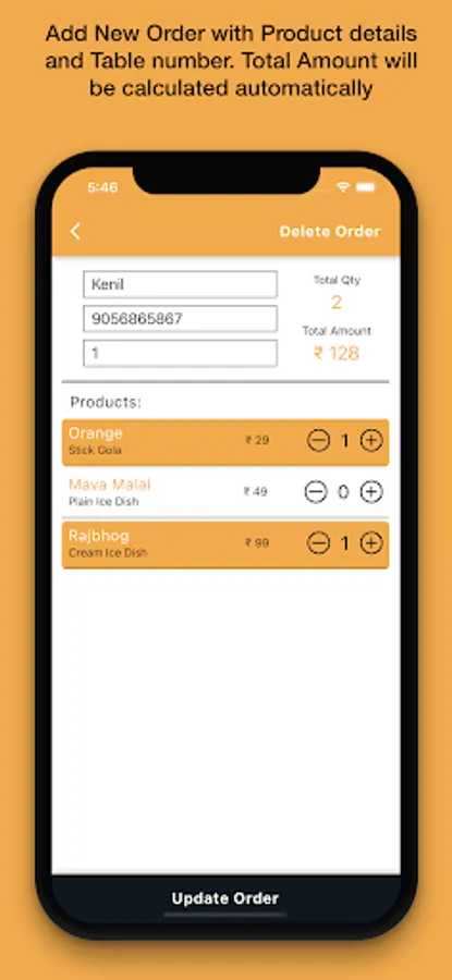 The owners can update or delete categories or products, customers or employees can update or delete orders placed by them. Share the details of the order on WhatsApp.